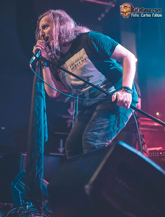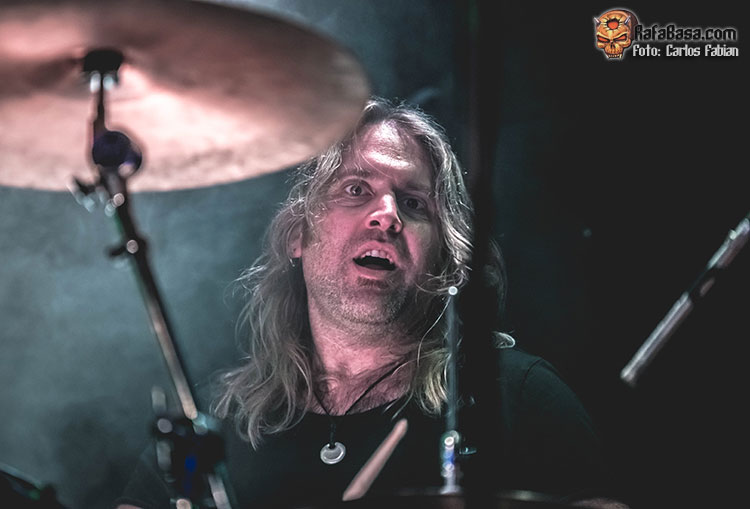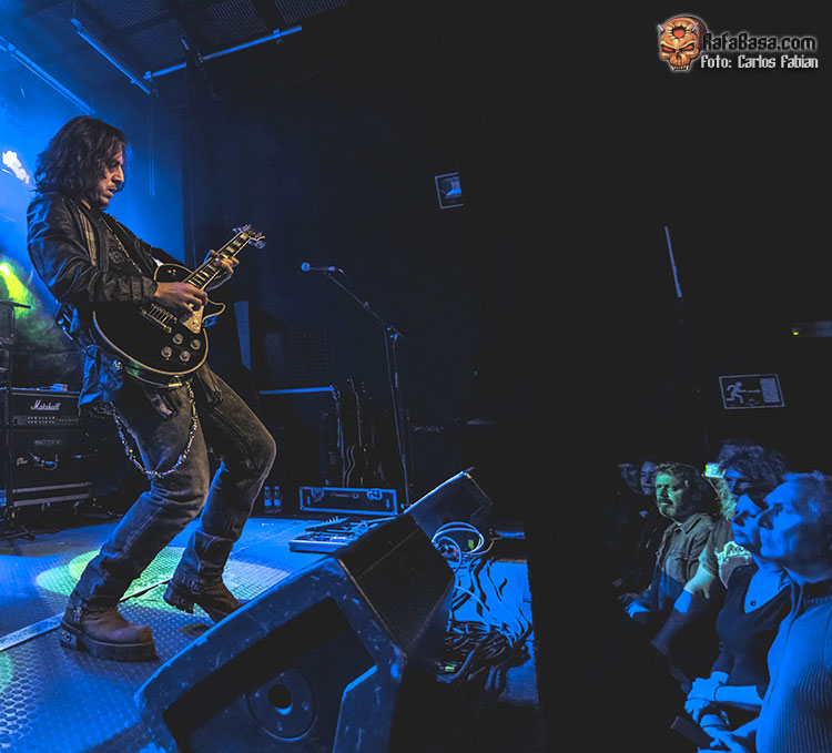 Darby Todd comenzaría con más ímpetu de lo que nos tenía acostumbrados para acometer un tema más heavy, que puso contra las cuerdas a un Jorge Salán que tuvo que dar lo mejor de sí para salir airoso, ante tan exigente tema. El duelo de solos nos obligaba, a volver a brindar. P-O Nilsson continuaba haciéndose fuerte en sus dependencias.