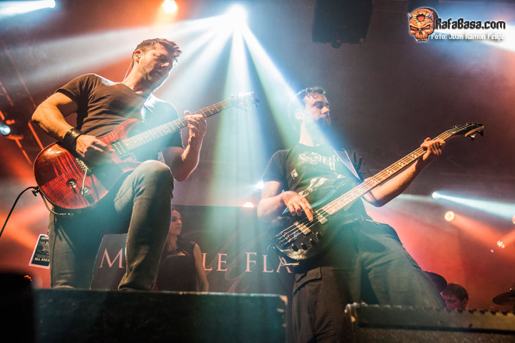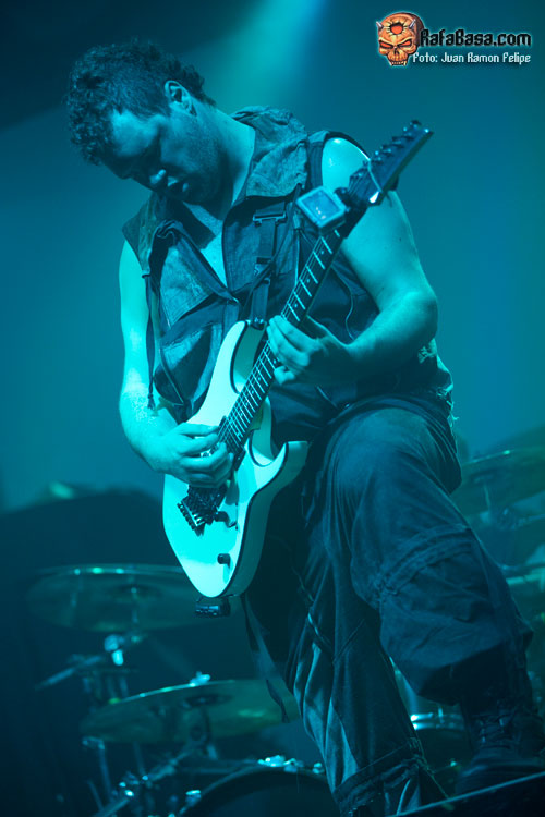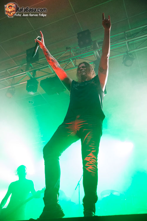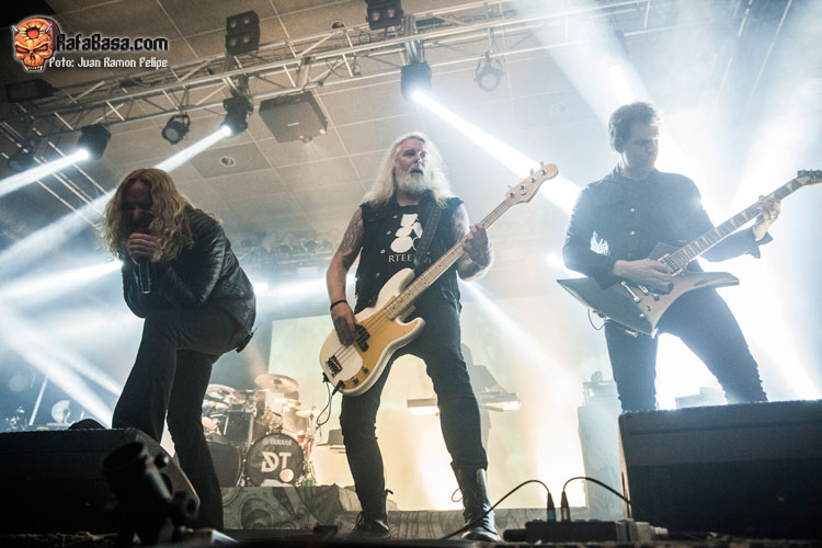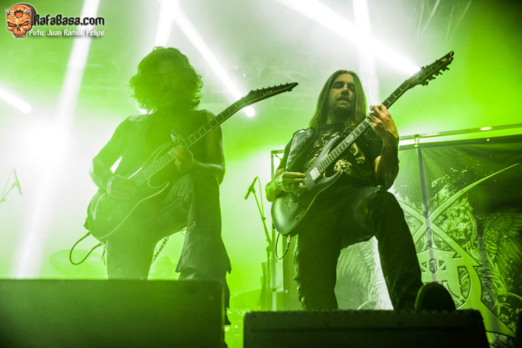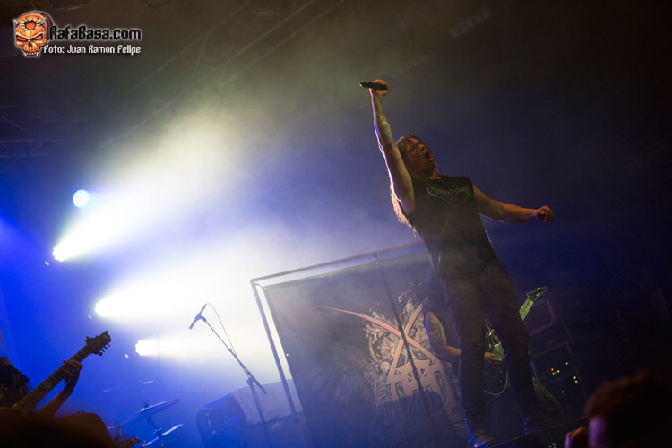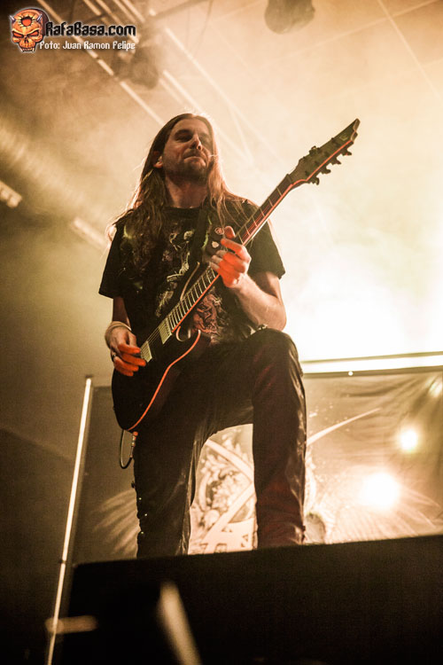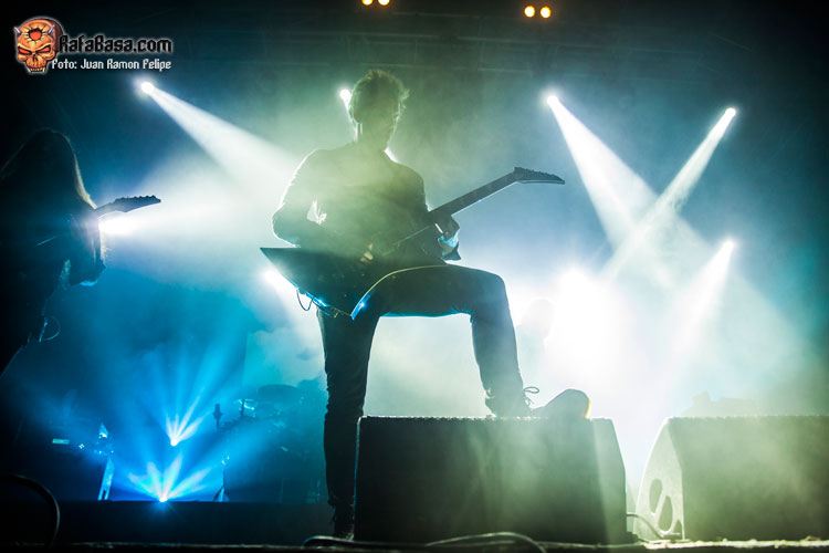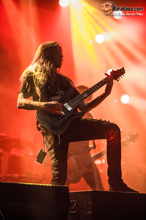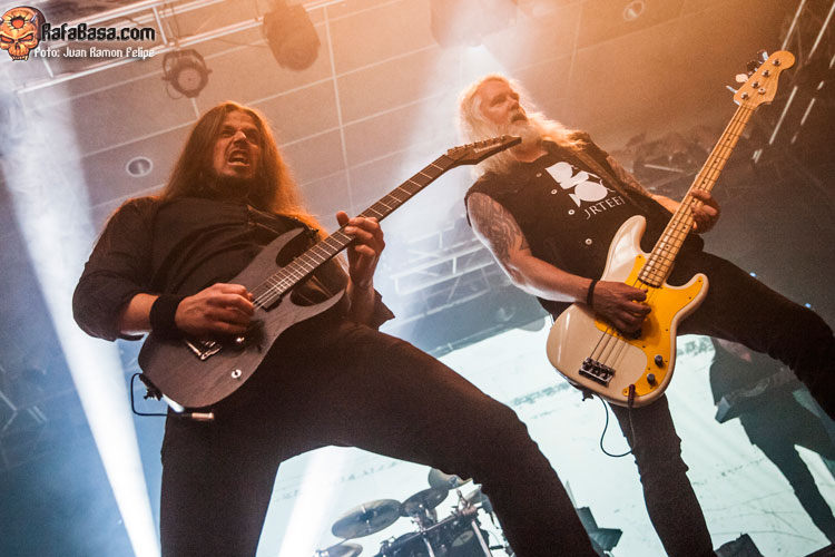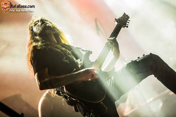 La formación se explayaba a gusto y con la confianza propiciada por acumular cientos de horas de carretera. La dupla de mástiles formada en esta ocasión por Christopher Ammot (ARCH ENEMY), hermano pequeño de Michael Ammot y Johan Reinholdz (ANDROMEDA) estuvo intratable haciendo las delicias de los aficionados de las seis cuerdas.