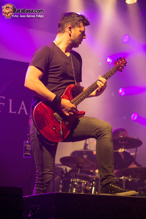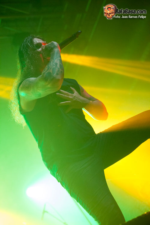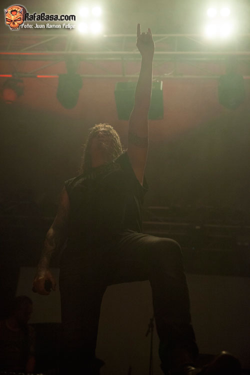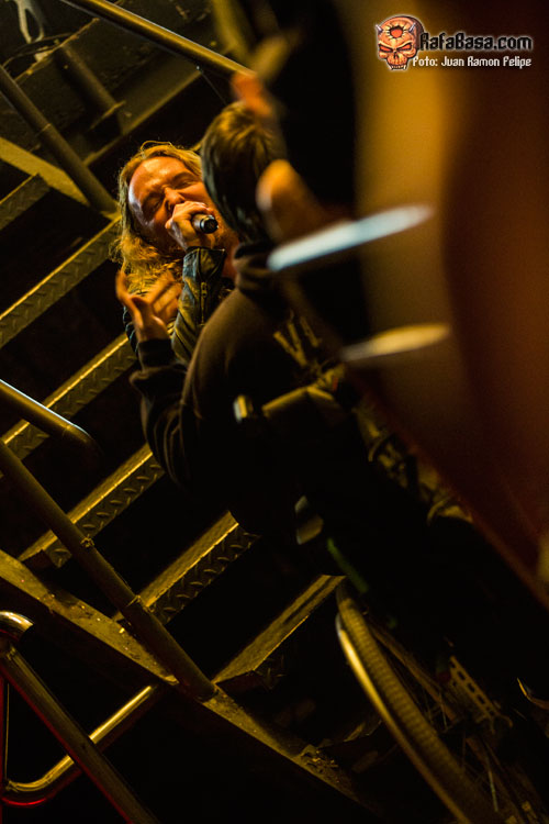 Nada más entrar por la puerta, nos percatábamos que el sexteto RED SOIL estaban ya ejerciendo sobre las tablas. Con el viento en contra, como suele ser costumbre en este tipo de ocasiones donde se reúnen cuatro formaciones, pelearon para dejar su impronta con autoridad. Los de Villareal practican un death metal muy influenciado por bandas como IN FLAMES y los propios DARK TRANQUILLITY pero que a ratos se escora hasta terrenos más industriales.