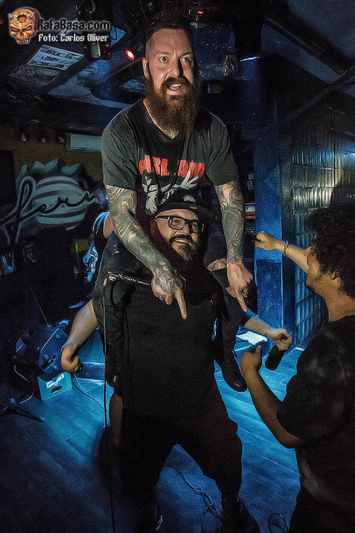 Parecía difícil que los británicos consiguieran mantener semejante nivel de intensidad durante todo el show, pero su vitalidad y la conexión con el público, -especialmente con los miembros de OSEZNO que no pararon de animar durante todo el show-, acabaron propiciando que el recinto se convirtiera en una sauna cuando nos adentramos en las sonoridades más oscuras y amenazantes de “Caller Of The Town”. Sin concedernos tiempo para recuperar el aliento, los temas de los británicos fueron sucediéndose, para convertirse en la banda sonora perfecta de las locuras acróbatas de un frontman que no vaciló a la hora de subirse a Caballito sobre el vocalista de OSEZNO durante “The Burning Sons”.