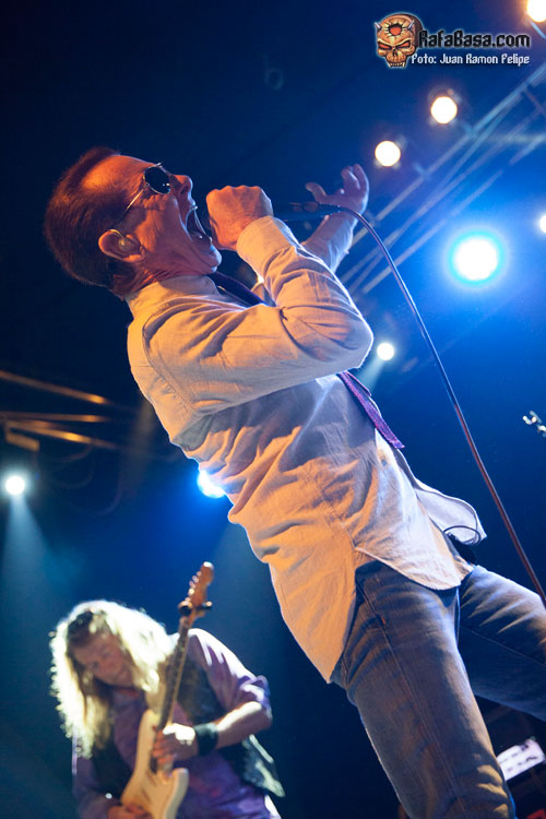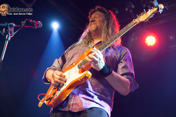 Ahora bien, si he de ser sincero, no hubiera apostado nada a que Graham Bonnet y su banda fueran a dar el concerto que luego nos ofrecieron. A sus 70 años, con cinco décadas de trayectoria musical a sus espaldas y con el mal recuerdo de Bilbao aún fresco, no veía a Graham Bonnet en principio con el estado de forma suficiente como para completar una actuación a la altura de principio a fin, sin flaquear en su forma de cantar tan visceral y falta de toda ortodoxia. Un estilo que le define, pero que también le exige cada vez más a medida que pasan los años. Pues afortunadamente me equivocaría de cabo a rabo.