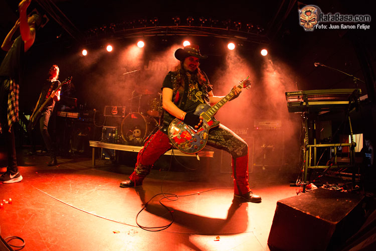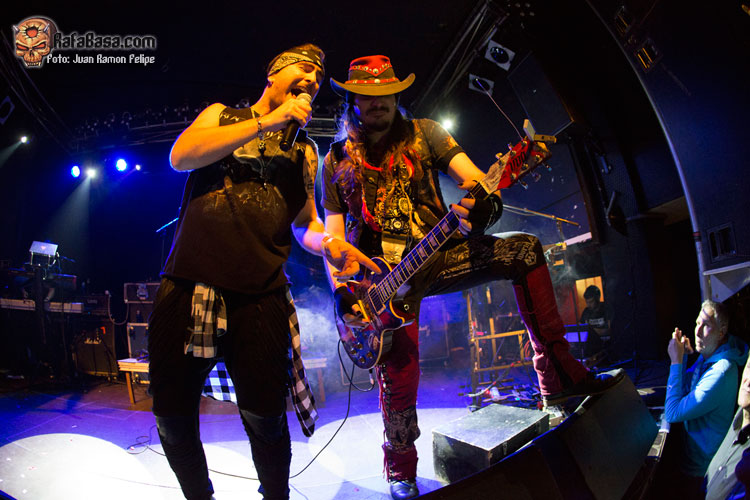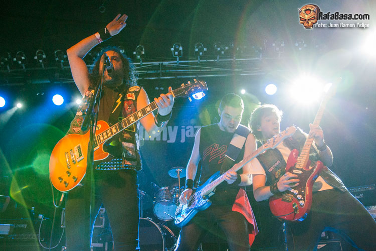 La banda además sabe derrochar carisma, capitaneados por Jorge Berceo, pero excelentemente apoyados en la base rítmica de Javi Herrero y Salva Hache, con un Victor De Andrés que aparte de su excéntrica imagen habitual impresiona como guitarrista. Pero ni mucho menos se le ve concentrado exclusivamente en su virtuosismo; el grupo toca para su público e interactúa con él de manera constante.