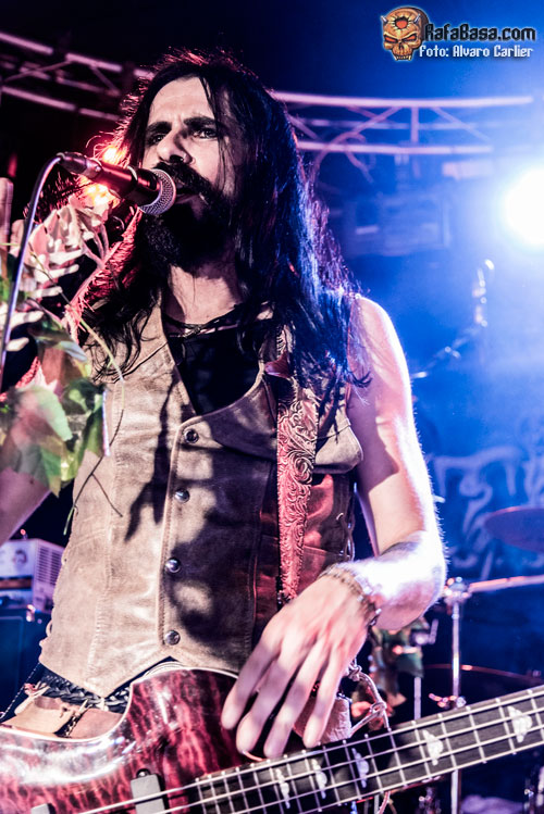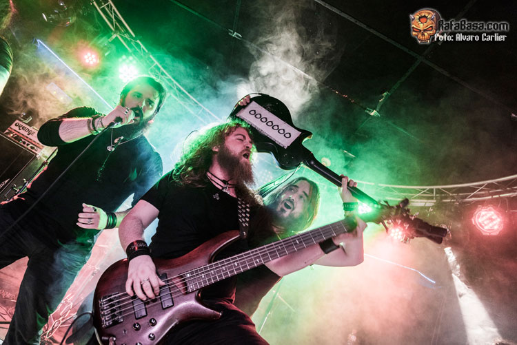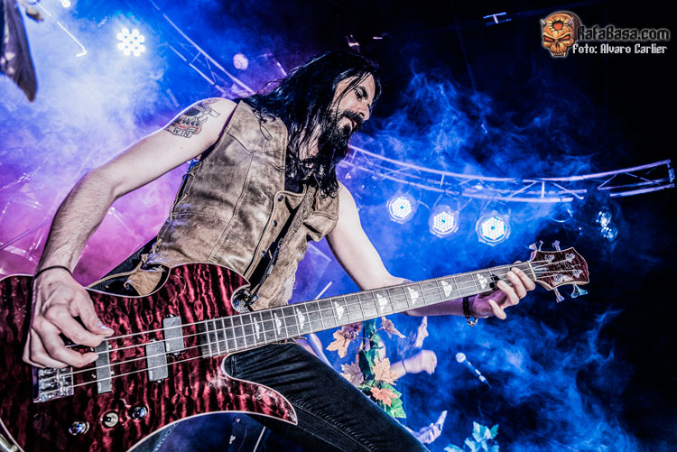 Tras ejecutar un impresionante ‘The Wolf I Am’—diría que uno de los momentos mágicos de la noche a cargo del vozarrón de Patricia—, se encargaron de dedicar una canción a OCELON diciendo que la barba de alguno de sus miembros les había inspirado para la misma, todo dicho en tono jocoso y también bromeando con que a Dagda y a su guitarrista Julián les faltaba barba para sentirse identificados con el tema. Tras este comentario, ‘Fear My Beard’ fue recibido por el público a golpe de pogo y de entrega por parte del respetable. Un momento lleno de diversión que también se equipararía a cuando antes de ‘Keltorevolution’, Gus invitaba a la gente a hacer un pogo distinto en el que, en lugar de golpes hubiera abrazos, implorando una aceptación del público que no tuvieron en Francia; finalmente el resultado fue el de un pogo normal en el que Gus dio por perdida la batalla.