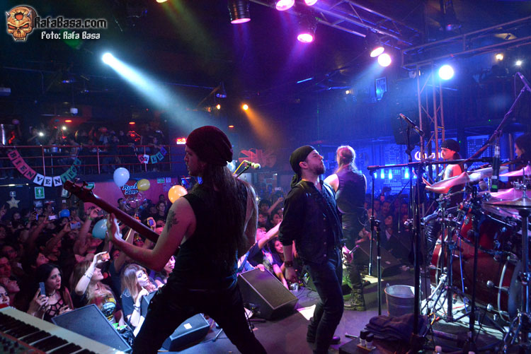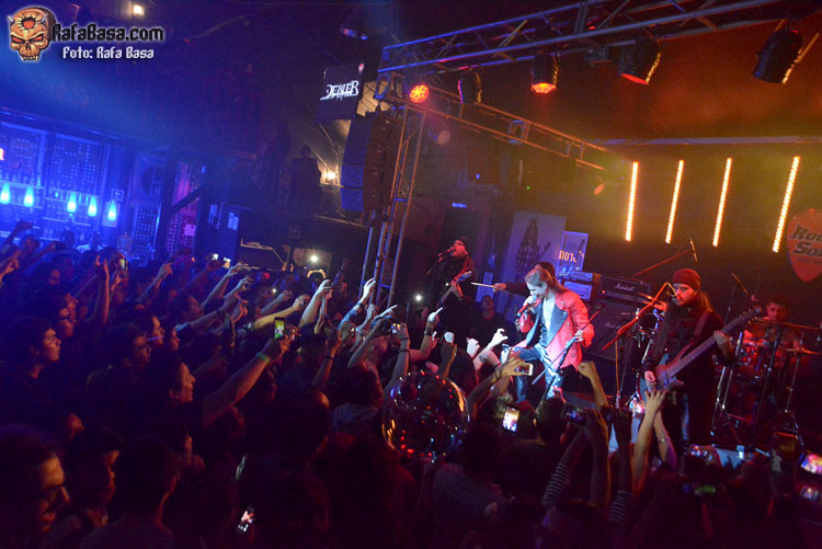 Rápidamente aparecieron en escena, ante el júbilo de un público que desde el inicio saltaron, cantaron y animaron. Tras la introducción pregrabada, su batería Nelson levantó los brazos alentando a los fans y salieron con poderío total con “Nadie nos va a Parar”, que sonó muy bien, con la banda enloquecida sobremanera en escena. El más simétrico fue Rubén, su cantante, quien se centró en cantar muy correctamente, afinando muy bien, y siendo el imán visual de esta joven formación, que vio cumplido su sueño.