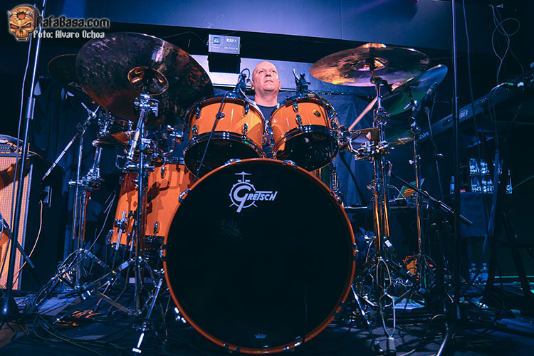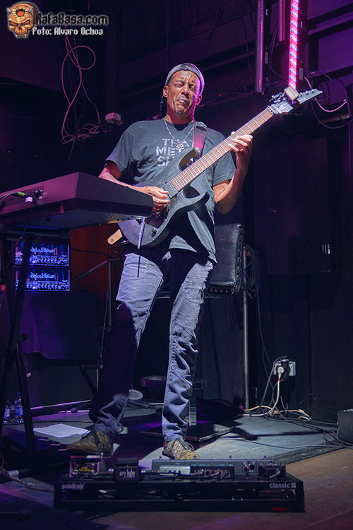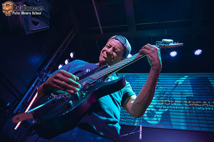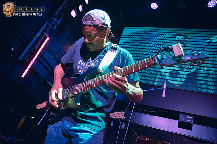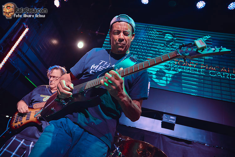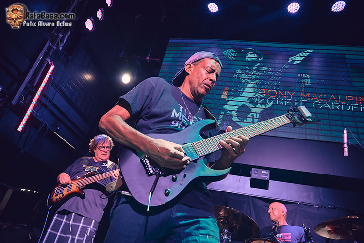 En esta ocasión tocaba chequear la actuación del as de la guitarra TONY MACALPINE. presentando su más reciente trabajo discográfico, “Death of Roses”. Con una sala a la mitad de capacidad, íbamos ocupando posiciones de cara a no perdernos ni un detalle de la actuación del genio, acompañado para la ocasión del gran batería Gergo Borlai y del legendario Stu Hamm al bajo, quien compartiría buena parte del protagonismo junto a MACALPINE, haciendo ambos gala de su camaradería, simpatía y buen humor.