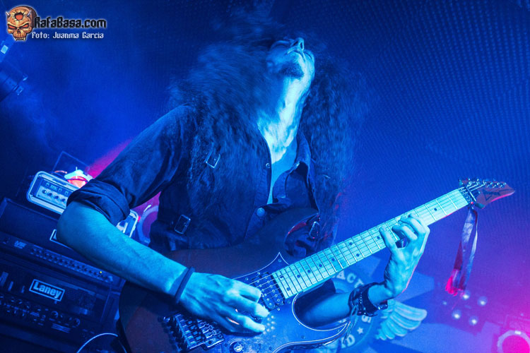 Desde este primer momento y enganchando con ‘Ghost’s Pride’, pudimos observar que el grupo se sentía con ganas de mover a un público minoritario como éramos, de que nos lo pásaramos de lujo y eso se comprobó especialmente en la entrega del grupo, que no paraba de animar y de pasárselo bien entre ellos. Eso, como es normal, al final convence y acaba por llevar al público a entregarse también a la causa, aunque se tardara un poco en entrar en todo su esplendor dentro de la praxis que querían ofrecernos RAVENBLOOD.