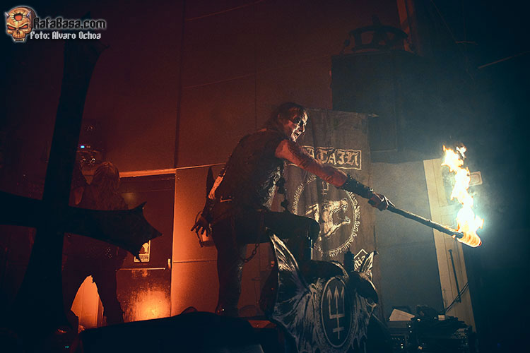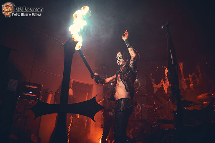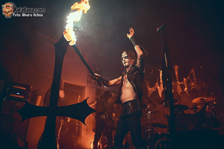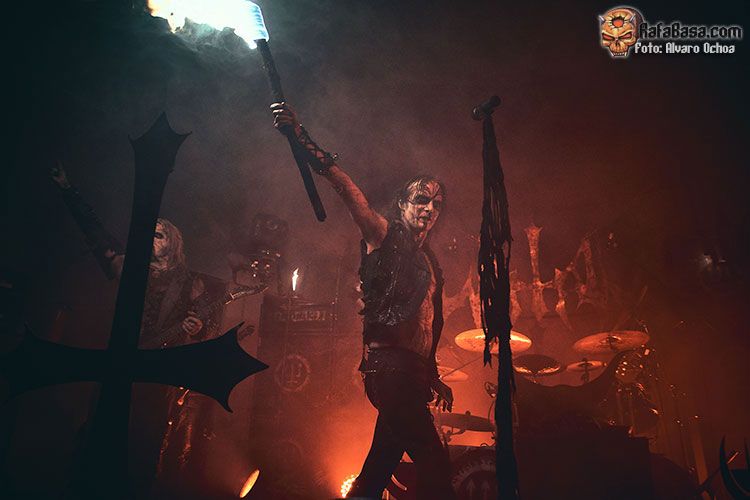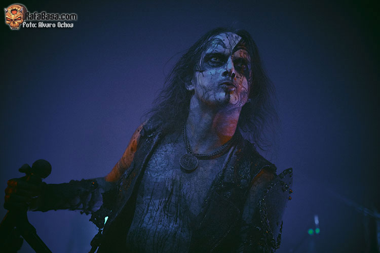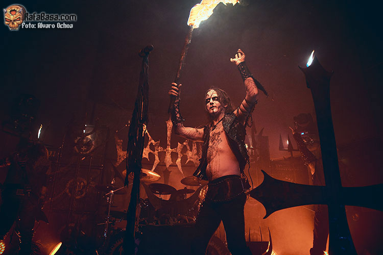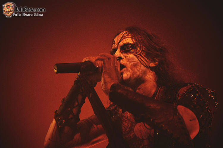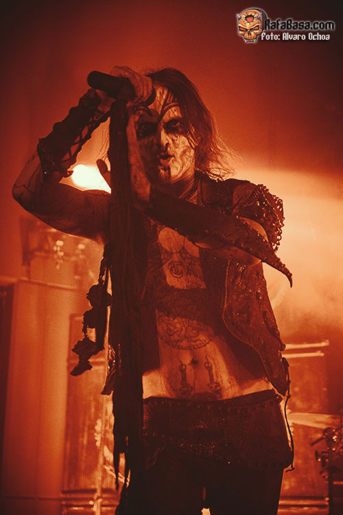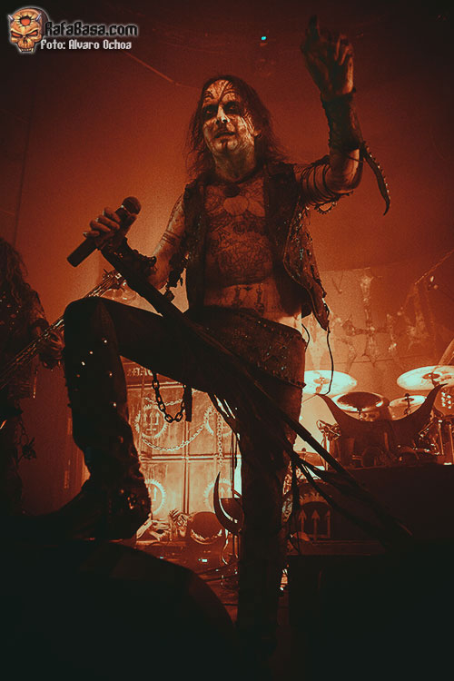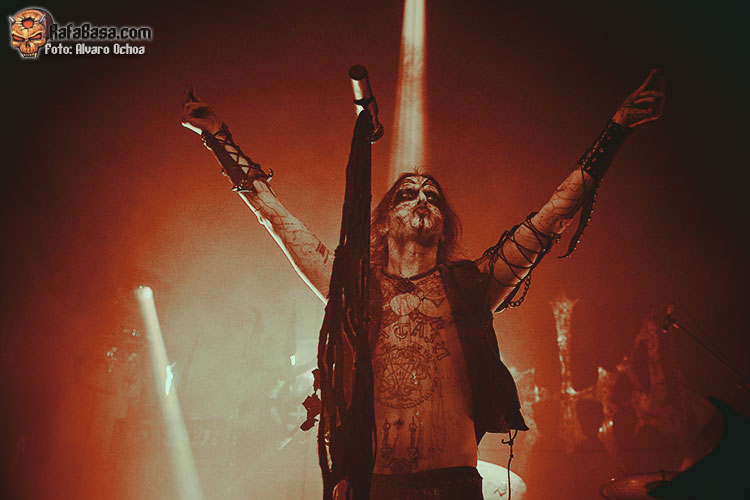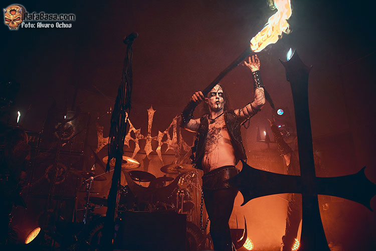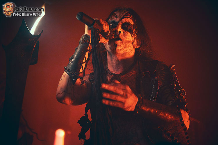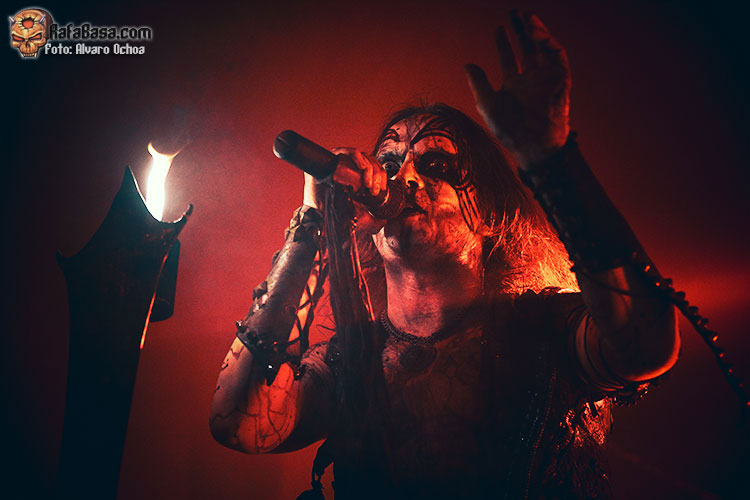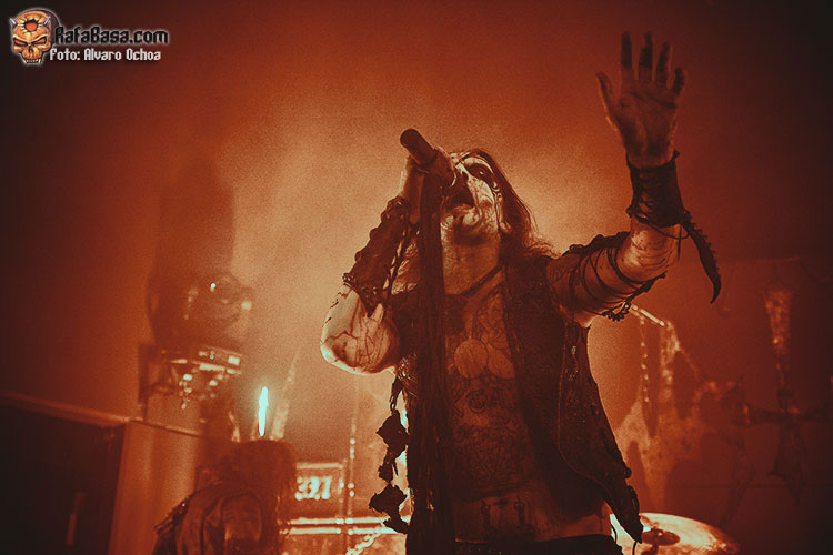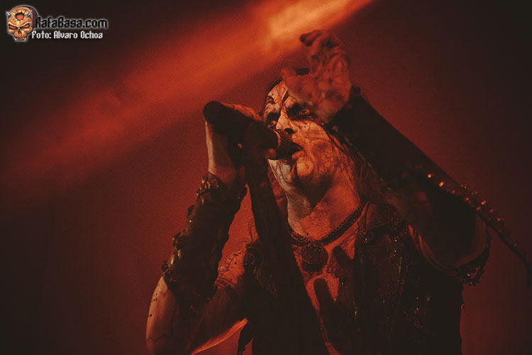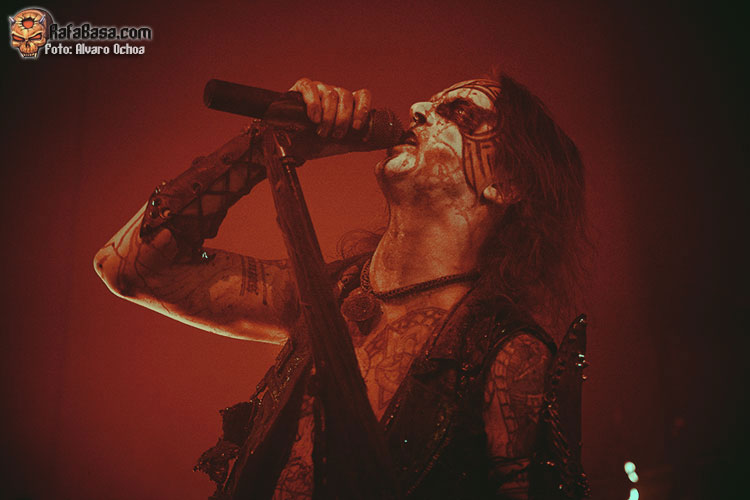 Ya para ‘Agony Fires’ pudimos observar, más allá de las miradas penetrantes y perturbadoras de Erik, como el vocalista jugaba a meter su mano en el fuego de las antorchas que yacían en la parte frontal del escenario. Cierto que es que, a pesar de la calidad que tienen todos los músicos y de su espectacular puesta en escena, las miradas principalmente recaen en Erik en todo momento. Jugando con el fuego, a mirar al público, a pasearse por el escenario, a ejecutar canciones de manera excelente e incluso, como ya advierten los que les han visto en otras ocasiones, lanzar sangre—con un olor asqueroso, todo hay que decirlo—al público. Sinceramente algo que queda muy bien si solo lo ves, pero que a los que estábamos en las primeras filas no nos hizo demasiada gracia, entre otras cosas, por el olor naueseabundo que emanaba.