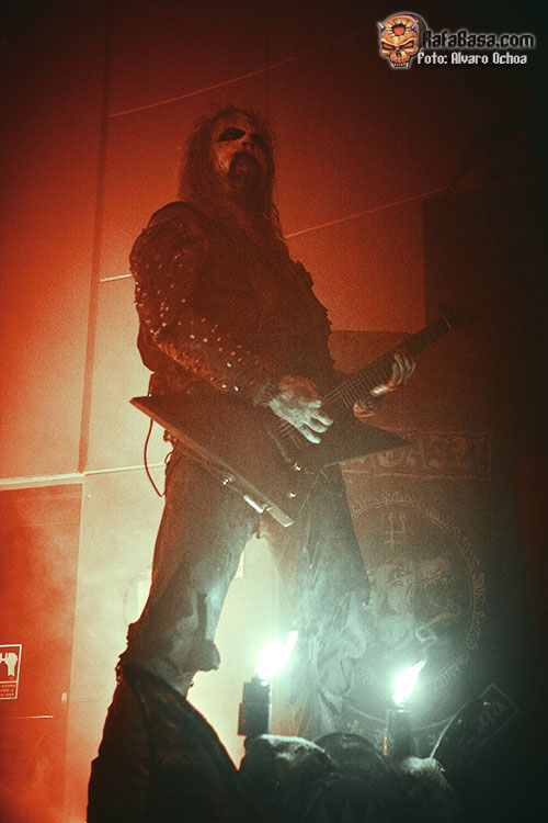 ROTTING CHRIST es una banda que no se puede tachar exclusivamente como black metal y en su discografía está la prueba, pero, sin lugar a duda, eran unos teloneros de lujo y un auténtico tiro hecho para disfrutar de un buen show. Abrieron el show con ‘666’ en un auténtico ejercicio para calentar el ambiente y arrancar con un ‘Fire, Death and Fear’ que me quedé con muchas ganas de escuchar en la última ocasión y sonó como un auténtico cañón, con un ritmo rápido; George Emmanuel poniéndose desde el principio la medalla en la solapa al mejor guitarrista que veríamos aquella noche. La manera que tiene de tocar es algo que no se suele premiar lo bastante bien en reconocimiento, pero en esta ocasión todos los asistentes en la Sala Shoko pudimos disfrutar de su buen hacer a la guitarra: impresionante, sin duda.