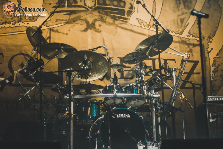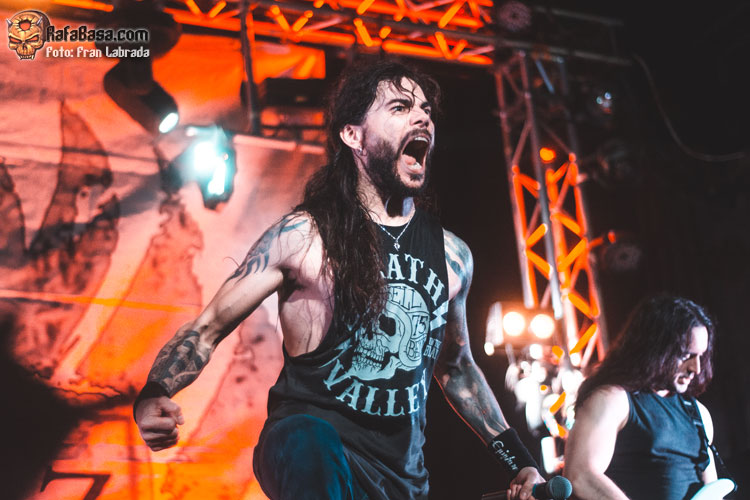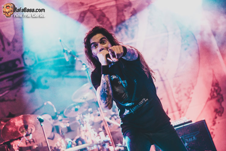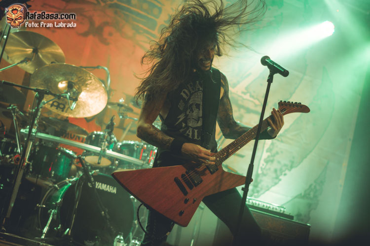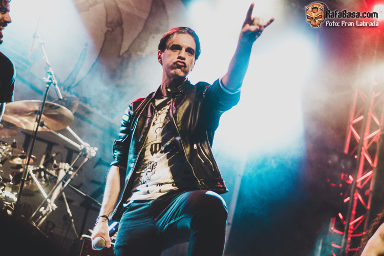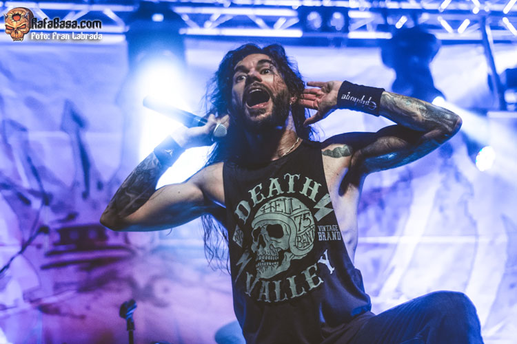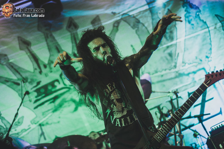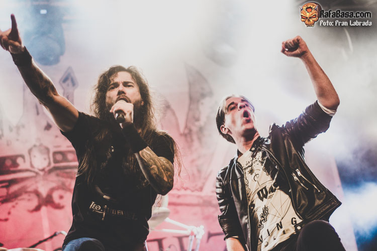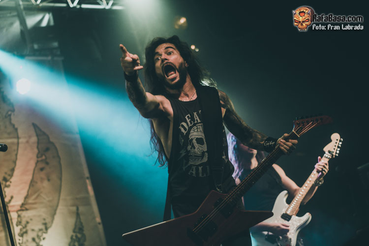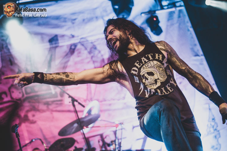 Pese a estas dificultades iniciales, que afortunadamente no tardaron en solventarse, la acogida del respetable fue excepcional. Así que el vocalista nos dio las gracias justo antes de abrir los brazos en jarra para presentarnos el desgarrador “Misantropía”, que se convertía en la excusa perfecta para que todos eleváramos nuestros cuernos al aire, plasmando la perfecta sintonía entre la banda y sus ardientes seguidores. Con el sonido ya completamente normalizado, Leo volvía a dirigirse al respetable para mostrarnos su faceta más crítica y social durante la charla que sirvió como presentación para “Hambre”, que era la escogida para volver a incidir en el material de “La Factoría Del Contraste”.