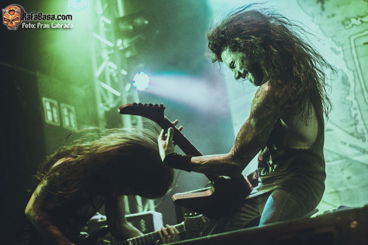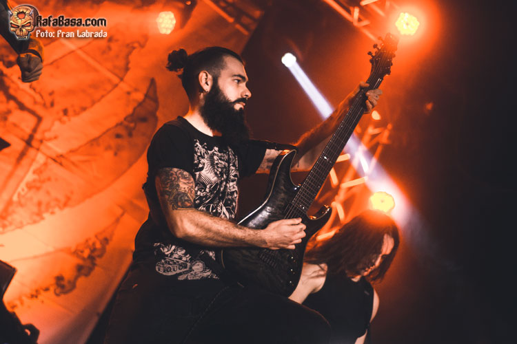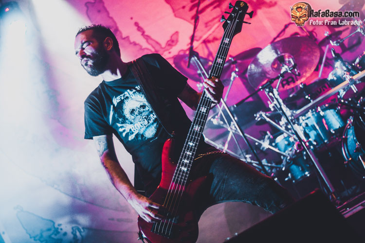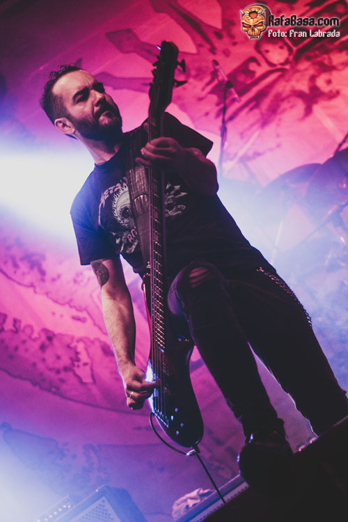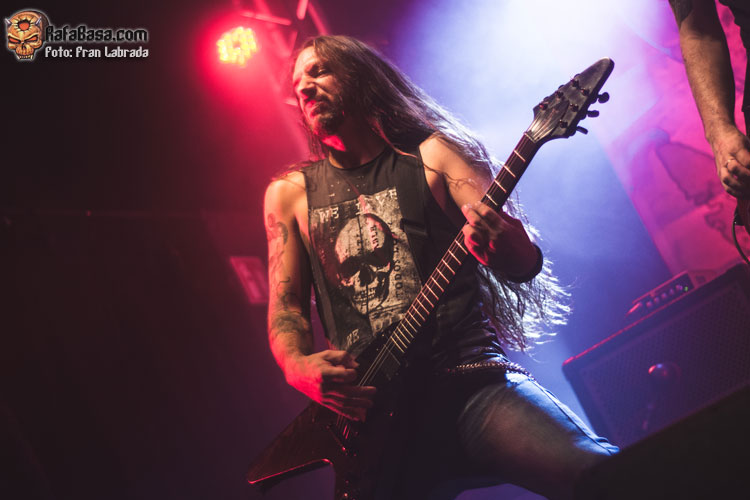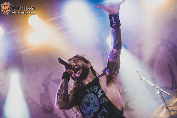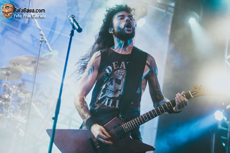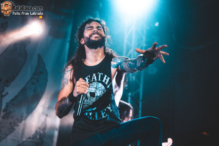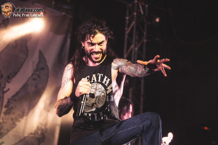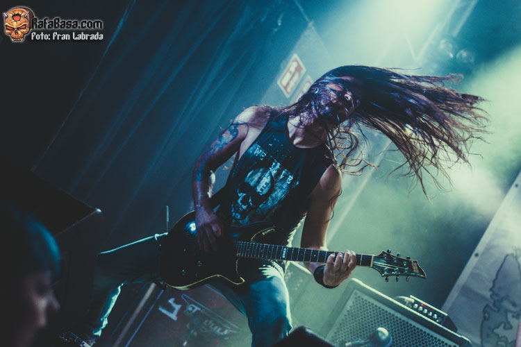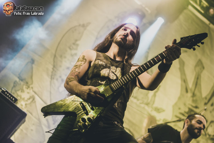 Pese a estas dificultades iniciales, que afortunadamente no tardaron en solventarse, la acogida del respetable fue excepcional. Así que el vocalista nos dio las gracias justo antes de abrir los brazos en jarra para presentarnos el desgarrador “Misantropía”, que se convertía en la excusa perfecta para que todos eleváramos nuestros cuernos al aire, plasmando la perfecta sintonía entre la banda y sus ardientes seguidores. Con el sonido ya completamente normalizado, Leo volvía a dirigirse al respetable para mostrarnos su faceta más crítica y social durante la charla que sirvió como presentación para “Hambre”, que era la escogida para volver a incidir en el material de “La Factoría Del Contraste”.
