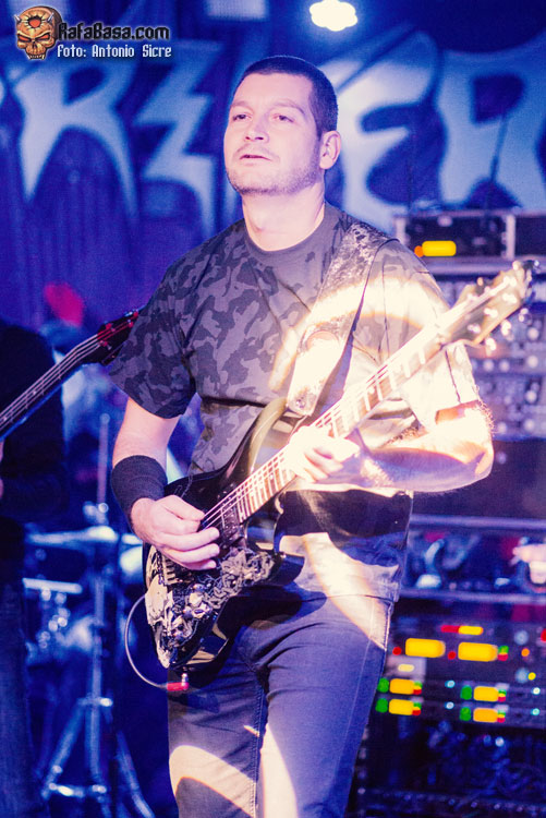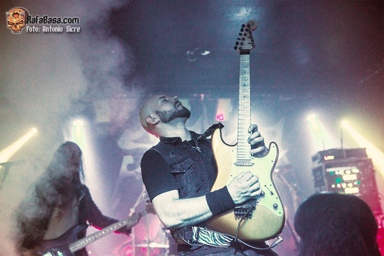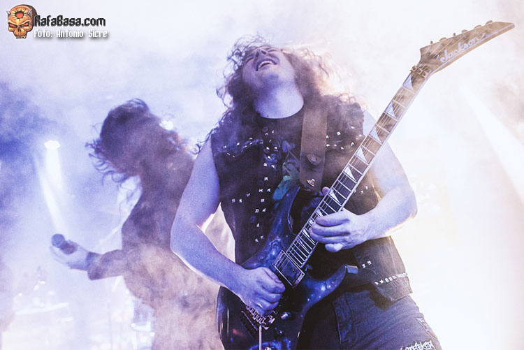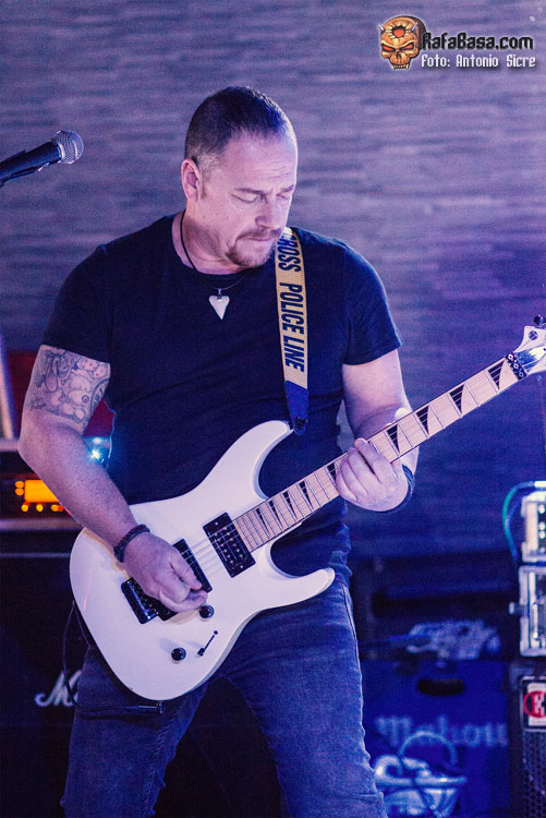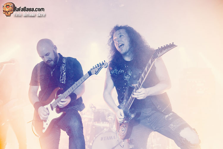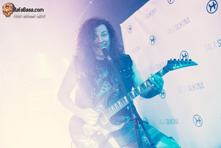 Al principio el sonido no terminaba de asentarse, había mucha batería, algo de voz y las guitarras, especialmente en los solos, eran prácticamente inexistentes, pero más o menos se fue arreglando a partir del segundo tema. El concierto en sí fue muy intenso, los cinco miembros del grupo no pararon de moverse e incluso llevaban unos lanzadores de humo que añadían un elemento vistoso a pesar de lo escaso del escenario. La sala se había animado bastante cuando STRIKER comenzaron con “Heart Of Lies”, un tema de su nuevo trabajo que fue seguido por “Born To Lose” de su desafortunada anterior obra.