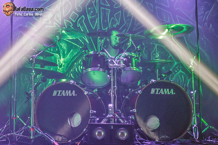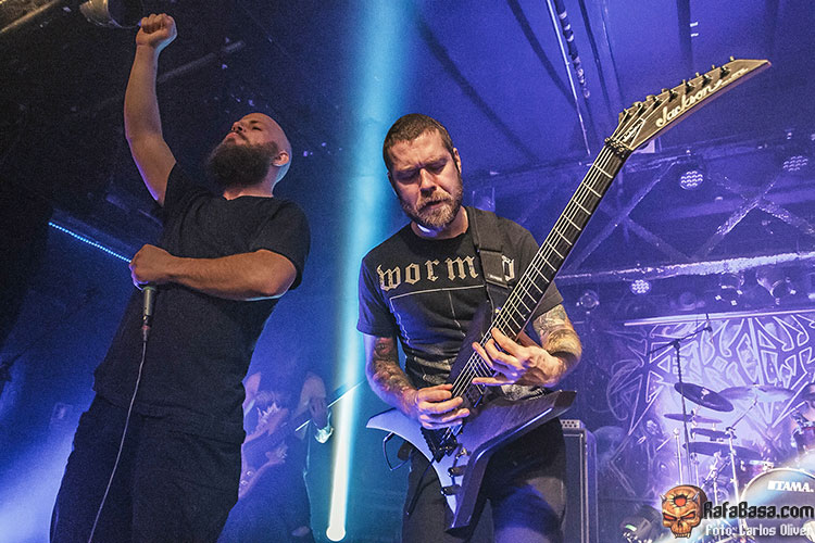 Si durante los primeros compases del show REVOCATION se concentraron en la velocidad incendiaria, fue durante el tercer corte “ Madness Opus”, cuando la banda se centró en la intensidad, ralentizando el ritmo para sumergirnos de lleno en sus pantanosas ambientaciones, contando para ello con la participación del vocalista de RIVERS OF NIHIL, Jake Dieffenbach. No tardaron mucho en volver a acelerar el paso para dejar que la rotunda pegada del batería Ash Pearson se dejara notar con fuerza a lo largo de otra de las nuevas “Blood Atonement”.