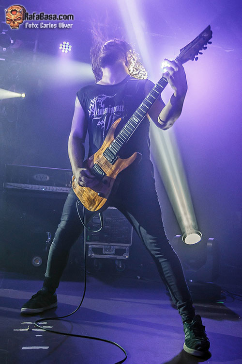 Si, evidentemente, a lo largo de la velada hubo velocidad a raudales y contundencia sonora, pero sería injusto no mencionar y poner el acento sobre los alardes técnicos que los americanos nos ofrecieron a la hora de desgranar temas como el fantástico “Ex Nihilo”, todo un derroche de melodía guitarrera incrustado sobre unas pétreas estructuras de esencias death metaleras. Una segunda y última mirada sobre el material contenido en ”Deathless” nos propondría un retorno a la ortodoxia metalera de manos de “The Blackest Reaches”, que según nos comentó Davidson era la primera vez que interpretaban en Barcelona.