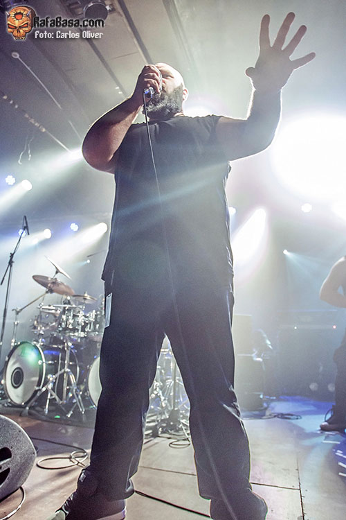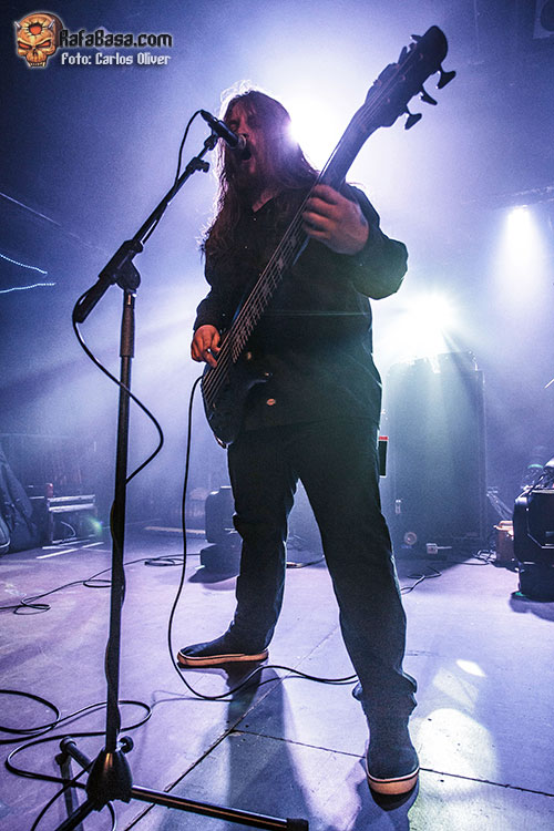 Sin duda su último redondo “The Outer Ones” no ha defraudado a su cada vez mayor parroquia de incondicionales, ya que sin perder su primigenia esencia los americanos han conseguido llevar su propuesta un paso más allá. Afortunadamente, pese a no ser perfecto, el sonido acompañó esta noche permitiéndonos disfrutar de los constantes cambios de ritmo y los técnicos desarrollos que nos ofrecieron REVOCATION desde que irrumpieron sobre las tablas para arrollarnos inmisericordemente con la pieza que presta título a su última referencia discográfica: “The Outer Ones”. A diferencia de lo que sucediera en su mencionada visita de hace unos años, me dio la sensación de que el combo americano ha esquinado su propuesta hacia la brutalidad, ya que pese a conservar su maestría a la hora de atacar piezas humeantes como “Of Unworldly Origin”, lo cierto es que ahora el registro de Davidson suena más tortuoso y desesperado.