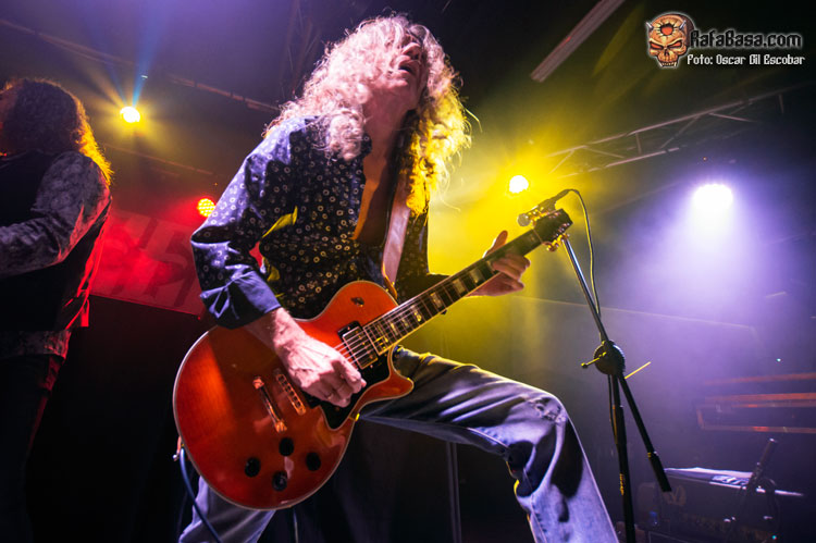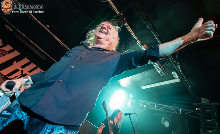 A diferencia de lo que sucediera en su visita de este pasado verano en el Rock Fest, esta noche la banda disfrutó de un sonido nítido y potente, lo que nos permitió disfrutar en todo su esplendor de temas como el propio “Living The Dream”, que era la elegida por el veterano guitarrista para demostrarnos que no ha perdido ese peculiar feeling que siempre le ha caracterizado. Sin concedernos ni un segundo de tregua llegaba el momento de cambiar radicalmente de registro para dejarnos arrastrar por los pegadizos estribillos de “Too Scared To Run”, que como comentaba anteriormente fue el único recuerdo que se permitieron a su producción de los ochenta, concretamente a su “Abominog” de 1982, y que nos dejaba con otro de esos trepidantes duelos marca de la casa que protagonizaron Box y Lanzon para acabar recabando una estruendosa ovación.