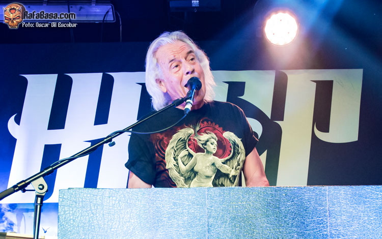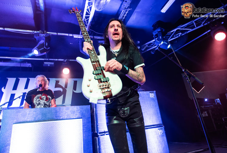 Si ya durante la actuación de IMPERIAL JADE el ambiente y la asistencia de público nos hacían presagiar que esta sería una gran noche, cuando faltaban apenas unos minutos para el arranque del show de la mítica formación británica el aspecto del recinto era ya inmejorable, con una sala abarrotada de seguidores que aguardaban impacientes a que el incombustible Mick Box y sus muchachos se adueñaran del escenario. Aunque los cambios de los músicos que conforman la sección rítmica de URIAH HEEP ha sido una constante a lo largo de los últimos años, lo cierto es que el núcleo central de la banda, que conforman el mencionado guitarrista, el teclista Phil Lanzon y el vocalista Bernie Shaw, se ha mantenido inamovible desde la segunda mitad de la década de los ochenta.