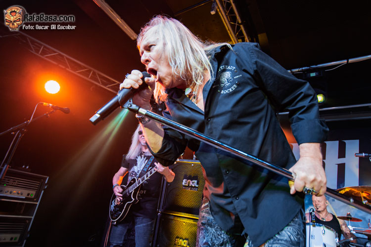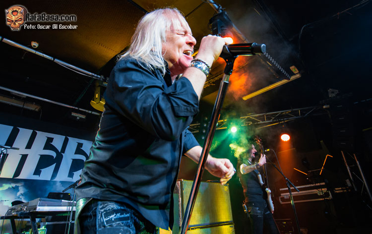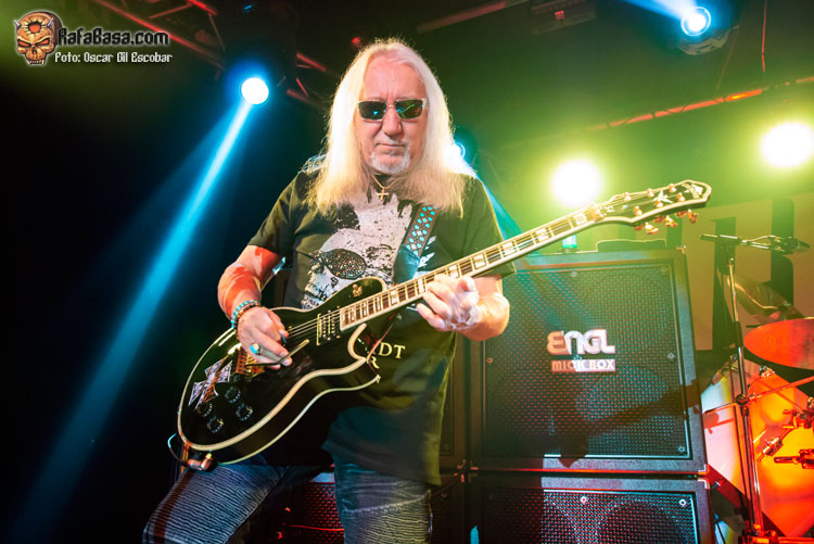 Por si alguien había perdido la cuenta, o bien no estaba totalmente familiarizado con la trayectoria del combo británico, Bernie Shaw se encargó de recordarnos que la banda lleva la friolera de 49 años en activo y que ha publicado un total de 24 obras de estudio. La reacción del respetable no pudo ser otra que tributar a la banda una cerrada ovación, y la respuesta de los londinenses ante semejante muestra de cariño llegó en forma de otra doble ración de nuevo material. La primera en sonar fue la sofisticada “Waters Flowin´”, con un fantástico trabajo de Box a las seis cuerdas mientras Shaw y Lanzon doblaban sus líneas vocales para protagonizar uno de momentos álgidos del show. Pero viendo el derrotero que estaba llevando el show resultaba evidente que esta era una noche para roquear intensamente, y para ello que mejor que el ritmo vacilón del contagioso “Rocks In The Road”, que se convertía en la excusa perfecta para que todos alzáramos los puños acompañando su fantástico estribillo.