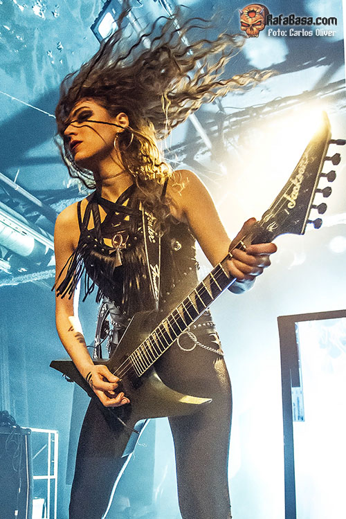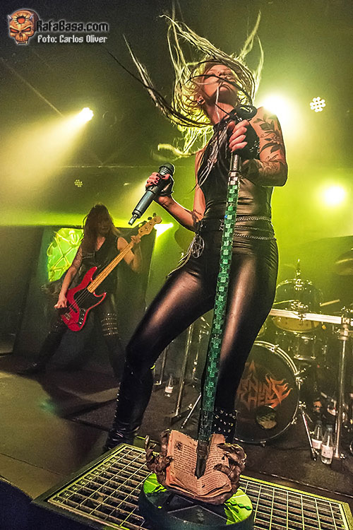 Como comentaba anteriormente la popularidad del quinteto de Brugg no ha hecho más que crecer como la espuma desde que publicaron en mayo de 2017 su prometedor debut homónimo. Avaladas por las excelentes críticas cosechadas con su flamante “Hexenhammer”, y respaldadas por las buenas opiniones de quienes ya habían tenido ocasión de ver su directo, Seraina Telli y sus chicas salieron dispuestas a dejarse la piel sobre las tablas, dándonos argumentos para que agitáramos frenéticamente la cabeza desde que empezaron a atacar los corrosivos riffs de la inicial “Executed”. Me gustó mucho su cuidada y trabajada puesta en escena, con la tripleta de cuerda ofreciéndonos un catálogo de poses clásicas mientras Seraina se convertía en la perfecta maestra de ceremonias, invitándonos a ser partícipes de temas como “Metal Demons”.