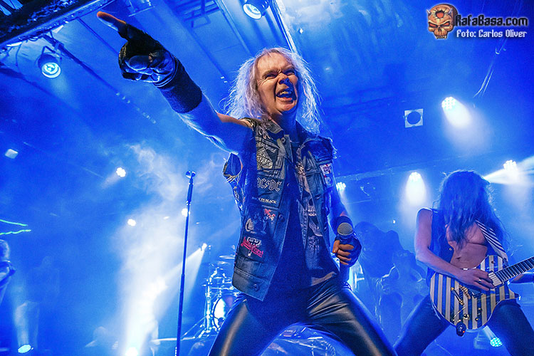 No tardaron mucho en volver a tomar el pulso a la velada ofreciéndonos la polvorienta cabalgada que encierra el demoledor “Black Widow”, con la vocalista ofreciéndonos unos registros más oscuros. Esa estrecha relación que la banda había ido forjando a lo largo de su presentación con el público quedó plasmada en la constante interacción que marcó “Open your Mind”. A estas alturas los ánimos estaban ya muy caldeados, así que era un excelente momento para que las chicas se sacaran de la manga una jugada ganadora. Para ello la guitarrista Romana Kalkuhl nos espetó el riff del imperecedero “Holy Diver”, que sirvió como homenaje al maestro Dio, para dejar que la rúbrica definitiva corriera por cuenta de la composición que presta nombre a la banda “Burning Witches”, tras la que se marcharon recabando una rotunda ovación y dejando en el aire la promesa de un próximo regreso.