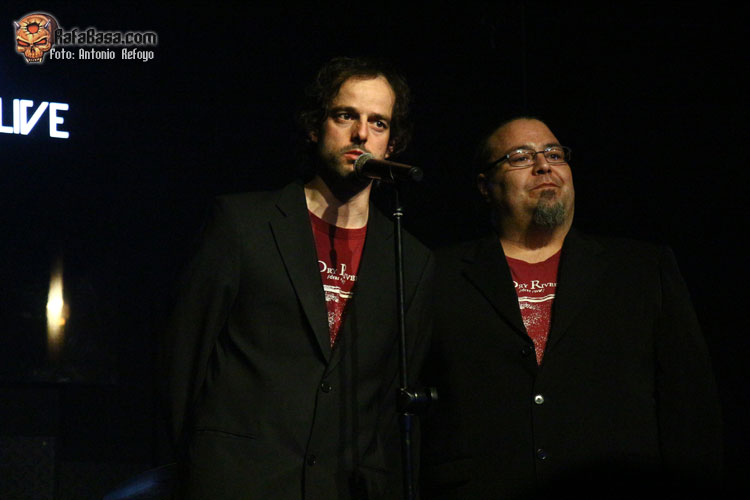Los protocolos ya se rompen cuando de entrada dos cómicos, que irían apareciendo a lo largo de la noche en el escenario, nos dieron la bienvenida. A partir de ahí, con las primeras risas ya entre el personal DRY RIVER se dedicó a desgranar su nuevo disco “2038” de manera íntegra, aunque en distinto orden al aparecido en el redondo.