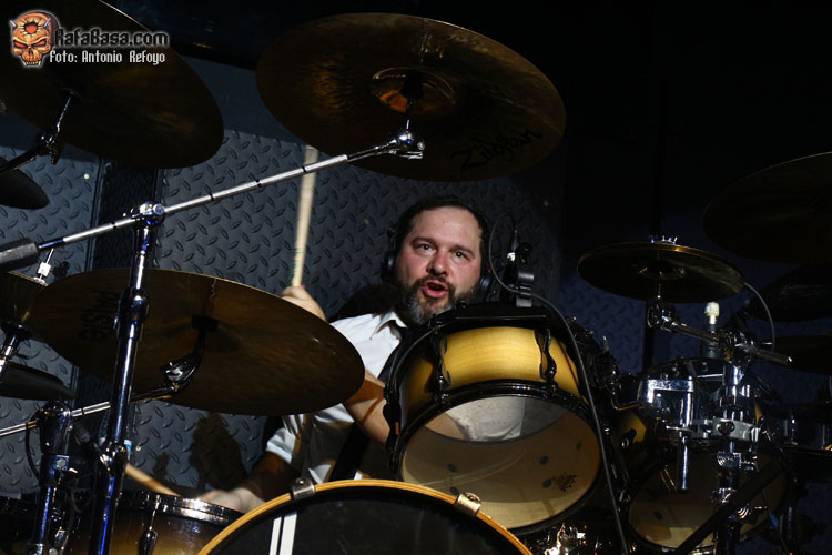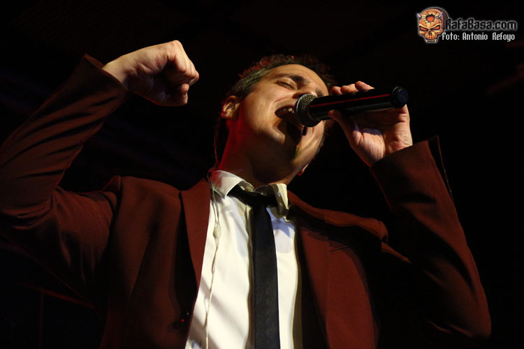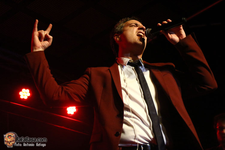En “Cautivos” tuvimos a uno de los personajes extra musicales apareciendo en escena haciendo gestos y pasando unos carteles acordes al texto del tema, mientras que en “Pean” saldría otro personaje cuchillo en mano para acabar de mancharse de sangre. Un tema de puro metal progresivo, iniciado con acústica por parte del vocalista y haciéndonos pasar por muchas capas. Pero el momento de la noche probablemente fuera para “Me Va A Faltar El Aire”, que ha cautivado a los presentes. Menuda manera de corear ese gran estribillo. Muy emocionante.