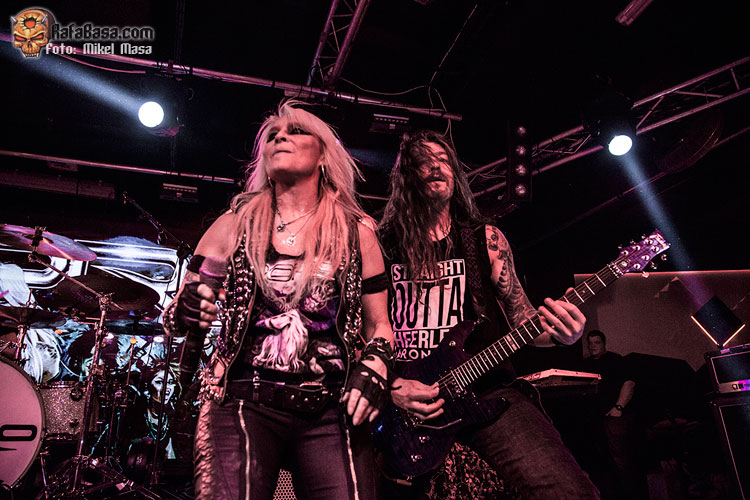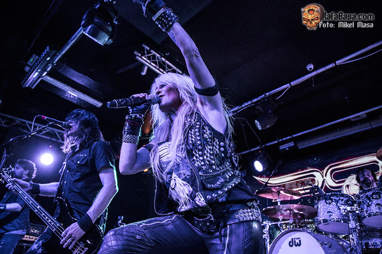 Por ella no pasan los años y quedó demostrado desde el inicio con “Raise Your Fist” y “Earthshaker Rock”, uno de sus últimos hits, y un clásico que barrió la pista con fuerza, donde el calor empezaba a ser notable, aunque el aire acondicionado de la sala funcionaba a la perfección en este caso. “Bastardos” con ese estribillo en castellano enlazaba con otro clasicazo como “Burning The Witches” con un público entregadísimo en todo momento ante la constante comunicación de la jefa, éramos completamente suyos. “The Night Of The Warlock” era coreada por toda la sala con ese estribillo tan mágico, otro de esos momentos que probablemente queden plasmados en un futuro DVD, y es que hay que recordar que hubo cámaras durante el show que se encargaban de grabar desde las horas previas del show hasta el final del mismo (veremos si el resultado es positivo y puede ver la luz).
