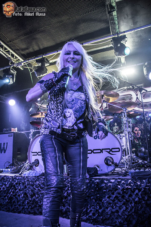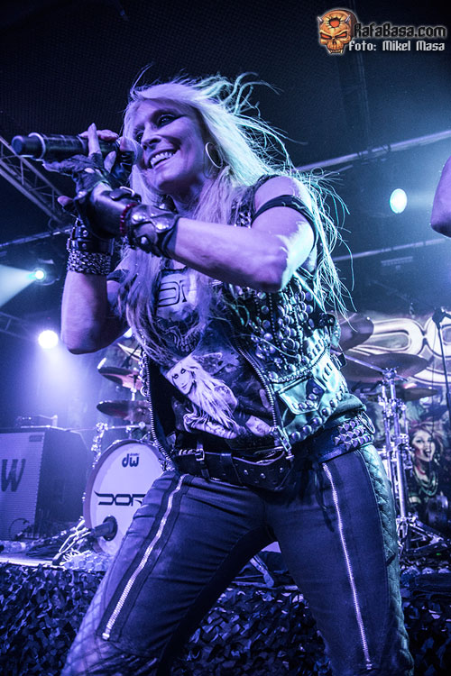 Sonido limpio, y esa intro de teclado tan bonita que da paso al redoble de Johnny, o lo que es lo mismo, llegaba “Für Immer”, palabras mayores, es imposible que no se te pongan los vellos de punta mientras escuchas a todo Madrid fundirse a una sola voz con la artista teutona, sin duda el momento más emotivo (como es habitual), pero en una sala tan llena a reventar y con un ambiente de música tan palpable coge una dimensión inexplicable, llega como diría la canción “muy dentro de mi corazón”. Derroche brutal de energía de una Doro que llegaba al rush final de la noche con “All For Metal”, otro nuevo hit que ha calado con fuerza en el set.