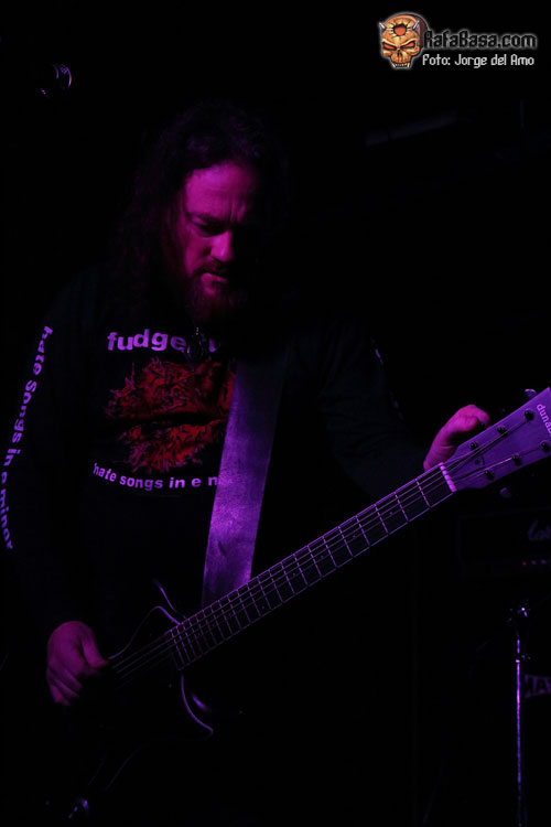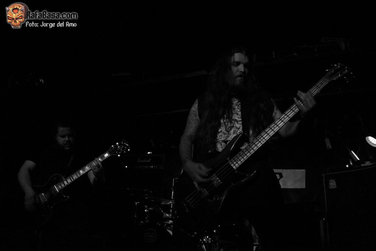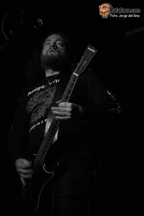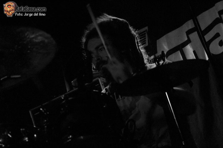 “Gravity Chasm” y Horns For Teeth” fueron puta carne cruda, y se notaba que la gente se iba enganchando, poco a poco, a su actuación y la banda iba colmando expectativas. Creo que fue ahí cuando el concierto fue creciendo y haciéndose gigante, tanto como las condiciones lo permitieron, y tema tras tema la temperatura fue subiendo a fuego lento, a golpe de ‘riff’, con un grupo increíblemente profesional y enchufado, decidido a arrasar fuera como fuera, y sin detenerse ni un solo segundo más que para dar las gracias a los BAST. “Foehammer” sonó como un demonio, y “Vexxagon” nos hundió el pecho como si de un mazazo se tratase, demostrando que no sólo es seguramente el mejor tema de su último trabajo, sino que también lo es en directo. Vino de la mano de otro cebollazo de “Existentian Void Guardian”, como “Volt Thrower”, que dejaría paso a la parte más cruda del concierto.
