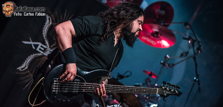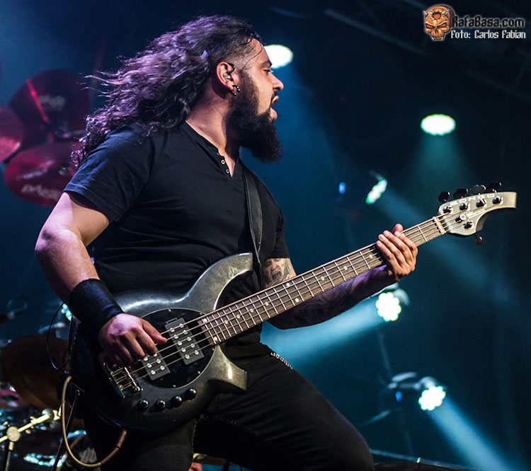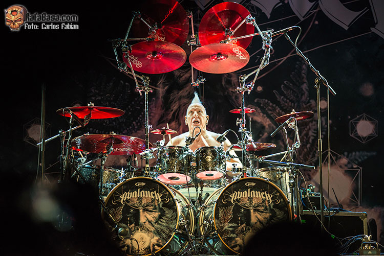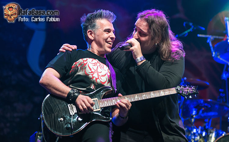 Proseguirían con piezas fundamentales en su discografía como “Mil motivos” o la excelente “Alborada” que generó un ambiente embriagador entre los congregados. Alberto Rionda, Manuel Ramil y Isra Ramos supieron impregnar el tema con impresionante emotividad. Llegaba el lustroso momento de Jorge Salan. El motivado por el despliegue de habilidades y destrezas protagonizadas por un hacha de semejante categoría. Una constante de precisión, elegancia y distinción. A continuación cambio de tercio con un nuevo repaso a su nueva obra mediante “El Alquimista” y “Decepción” antes de llegar al momento reservado para el lucimiento de Mike Terrana.