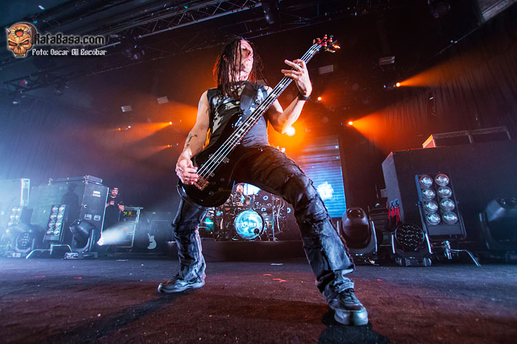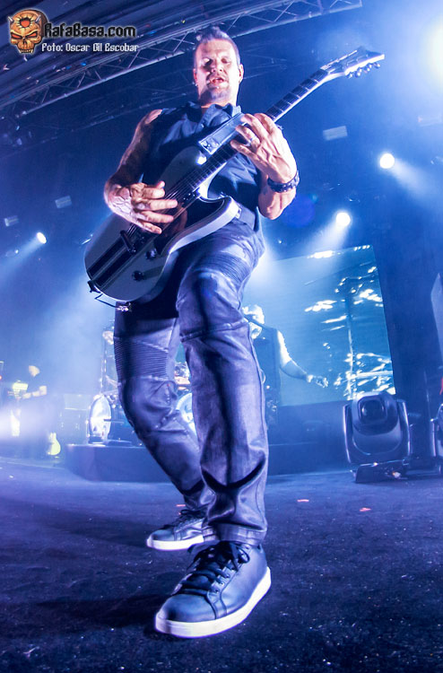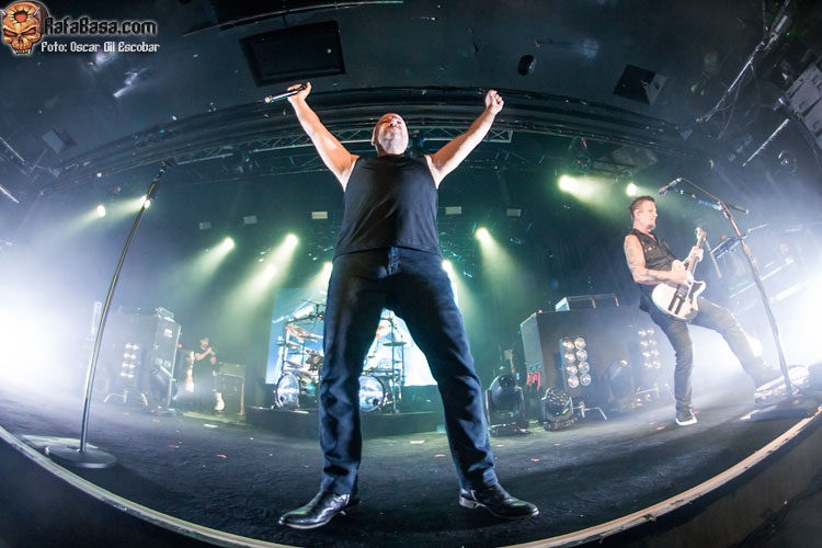 David Draiman es el dueño y señor del escenario, a pesar de que su actitud es más bien seria y de concentración. Ya son 45 años los que tiene y se nota que desde el principio intenta dosificar para dar lo mejor de sí mismo. En líneas generales cantó bien, aunque tuvo algunos deslices que, por lo que vi, tienen que ver con el cansancio. No fueron desafines por no llegar a una nota, eran gallos por tener la voz cansada. Llevan con la gira de Evolution desde enero de este año y no han parado desde entonces (y tienen fechas hasta octubre), así que, sin querer justificar esos errores, creo que es normal que sucedan cuando llevas cuatro meses seguidos tocando y viajando por todo el mundo.
