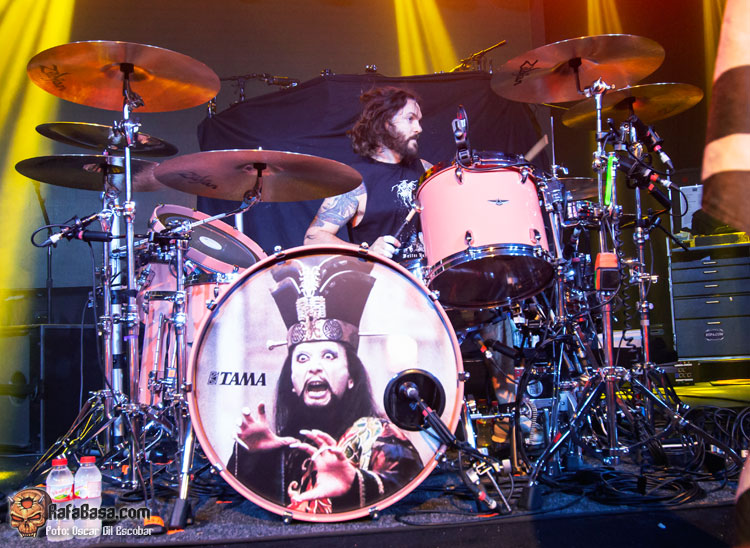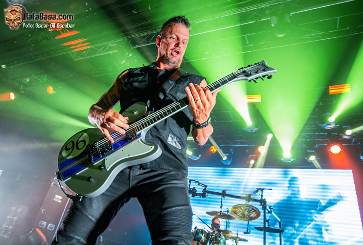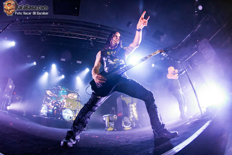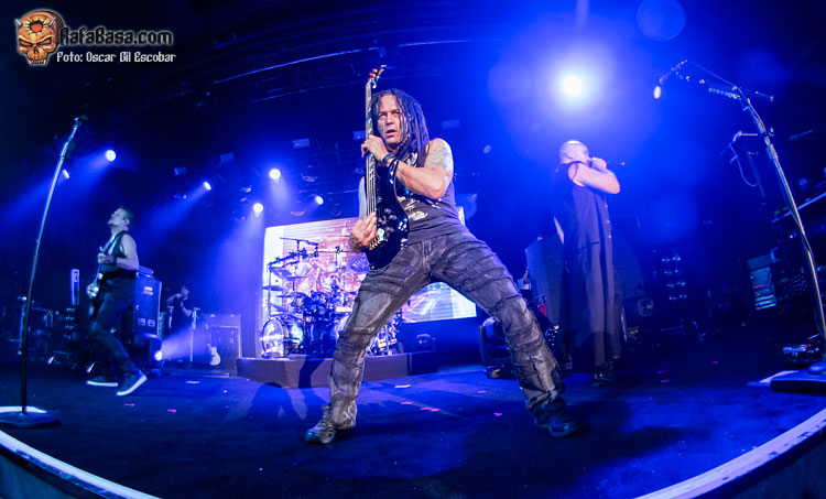 Sin embargo, hay algo que como espectador eché en falta: pasión. Por momentos me dio la sensación de que estaba viendo a unos «oficinistas del metal», que llegaron para hacer su trabajo y que ya estaban pensando en el siguiente día de trabajo. No me transmitieron la fuerza ni la garra que tienen muchas de sus canciones, aunque sí hubo momentos emotivos como comentaré ahora. E insisto que a nivel de ejecución, sonido o producción no se les puede poner apenas pegas, y creo que los fans disfrutaron de lo lindo, pero a mí me faltó el hambre con el que sí salen otras bandas de su nivel (una de las últimas que vi en esta misma sala y que puedo mencionar, por ejemplo, es BEHEMOTH, que son diferente estilo, sí, pero llevan gran producción y salen a por todas).