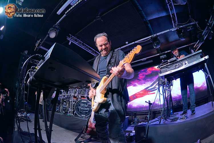 Las proyecciones en el fondo eran pieza importante en la narrativa del show, buscaban junto a los varios cambios de vestuario de Neal Morse , contar una historia cargada de argumentos musicales de sobra para satisfacer a los asistentes pero también con un espectáculo visual y dinámico que mantenía enganchado a los presentes, era la última noche del tour, y estaba claro que no lo querían dejar pasar por alto, la actitud y teatralidad de Neal Morse lo dejaban claro. Pero, no sólo Neal Morse cumpliría un papel importante, en este show hubo espacio para todos, y es que hubiese sido un crimen desperdiciar el increíble talento de los músicos que acompañan a Morse en esta banda. Portnoy, como siempre, se mostró soberbio a la batería, con complejos arreglos y momentos brillantes en los que le tocaba destacar por encima del resto, y por si fuera poco, mostrando también sus dotes vocales en los coros y como voz principal de algunos temas… un crack absoluto el señor Mike Portnoy.