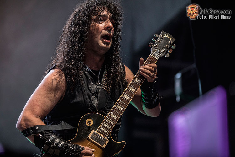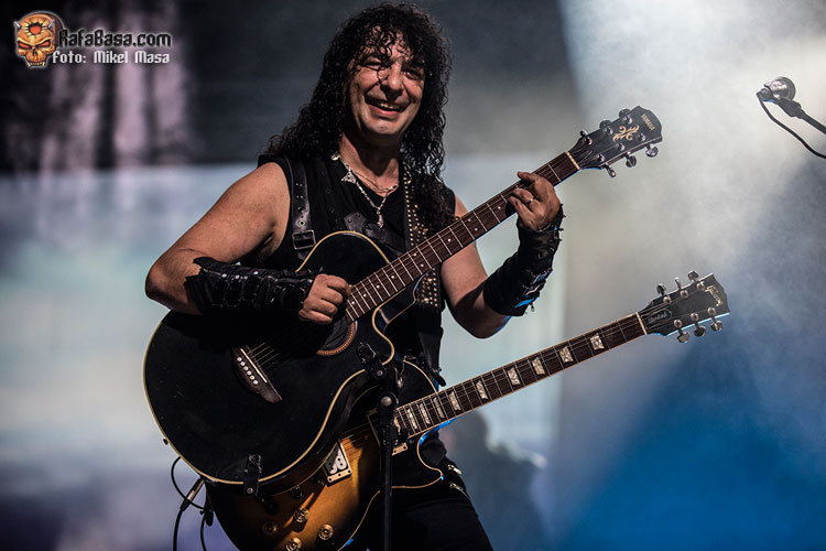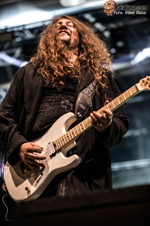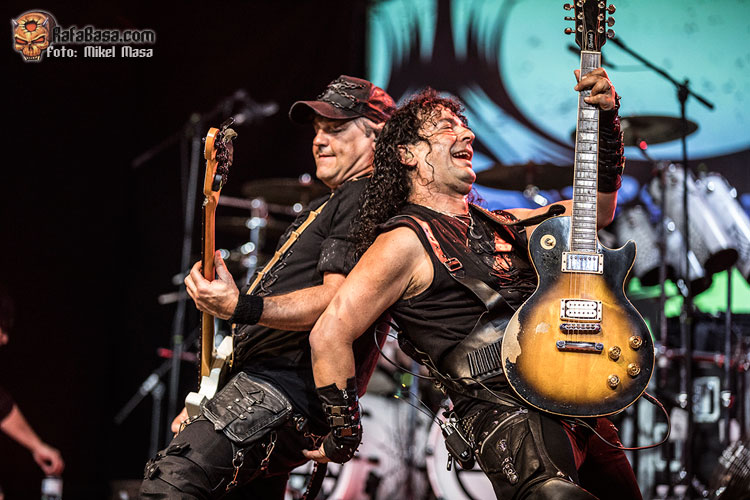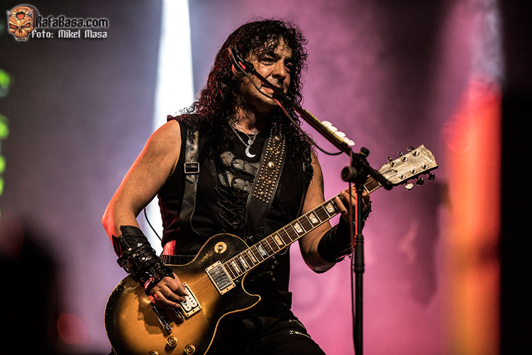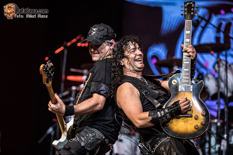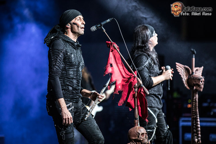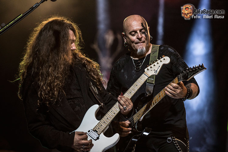 Tras “El libro de las sombras” arremetieron con “El amor brujo”, de Ira Dei, uno de los cortes más directos del álbum y que gana mucha fuerza en directo. Zeta comparte voces con Patri y a estas alturas se nota la gran química que hay entre ellos y lo bien que se compenetran. Y, por cierto, a pesar de los problemas de sonido, me llamó mucho la atención lo engrasada que está toda la banda: ejecución estupenda incluso con los temas nuevos.