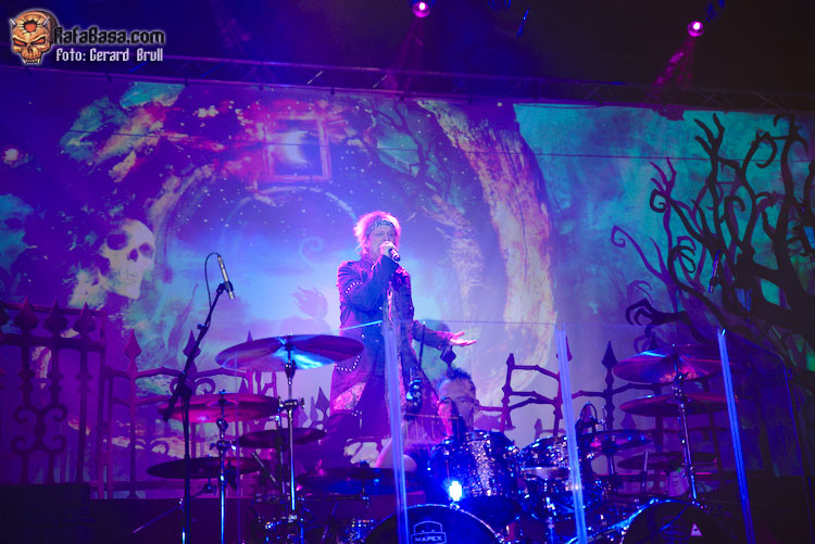 A la hora prevista, haciendo gala de una puntualidad británica, y tras sonar el clásico de Ac Dc “You Shock Me All Night Long”, que fue coreado con auténtica devoción por el respetable, las luces del local se apagaban para dejar paso a la introducción “Symphony No. 9, Op 125 (Ode To Joy)”. Acompañado del ensordecedor rugido de la audiencia la cortina que ocultaba el escenario de miradas indiscretas no tardó en abrirse para que pudiéramos seguir los primeros pasos de los músicos. Desde la parte superior, por encima de la batería de Bohnke, emergió la figura de Sammet, -ataviado con su habitual gabardina larga, su bandana en la frente, y su pañuelo al cuello-, para dar el pistoletazo de salida con “Ghost In The Moon”, que servía para poner de manifiesto que el nuevo material de AVANTASIA ha calado hondo entre sus seguidores, ya que sus diez minutos de duración se nos pasaron como un suspiro.