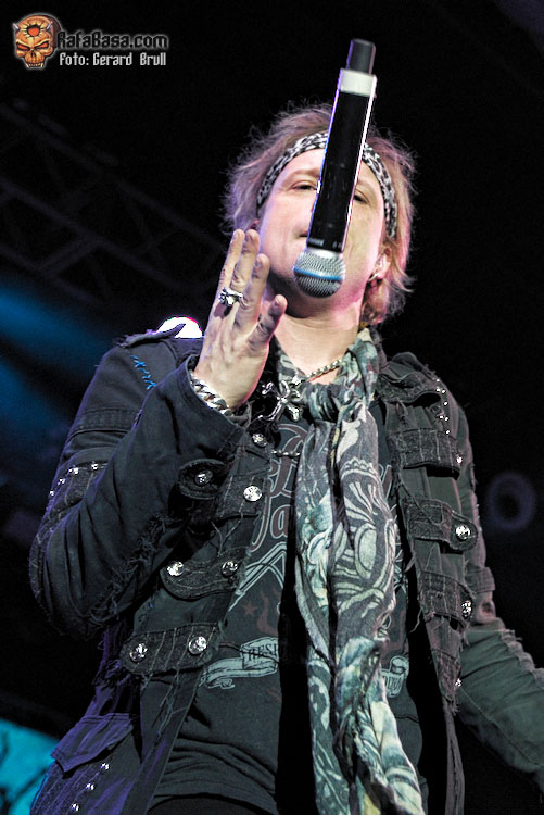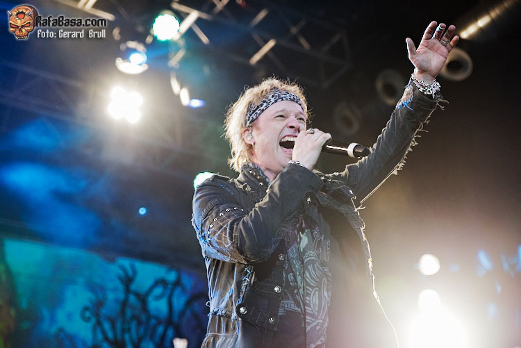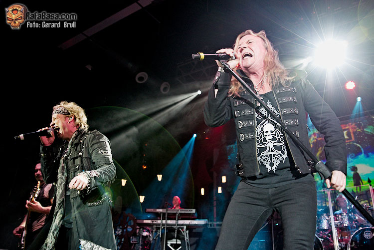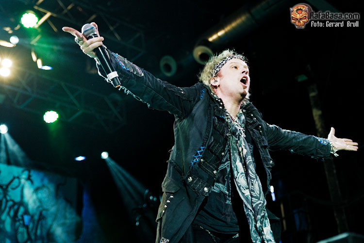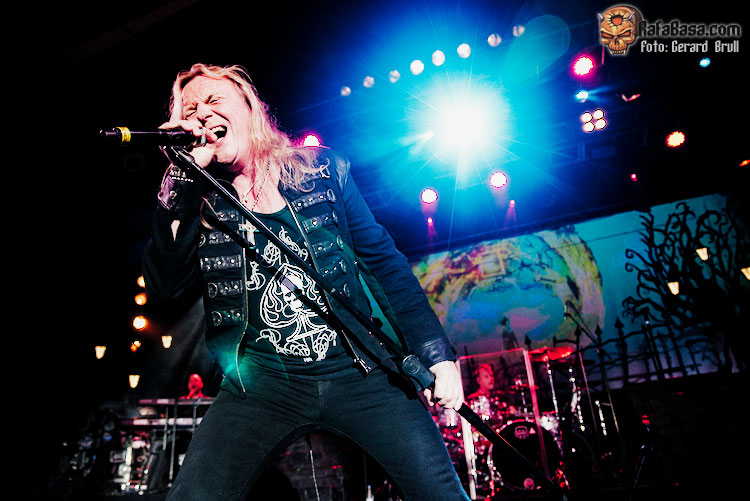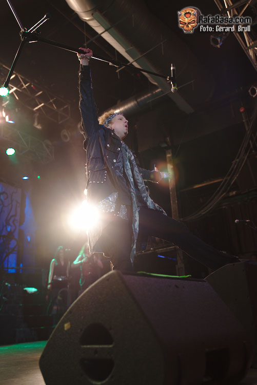 Si hay algo que se ha mantenido invariable desde la primera vez que un servidor tuvo ocasión de ver en acción a Sammet, en aquella lejana gira en la que unos jóvenes EDGUY abrían para HAMMERFALL, es su verborrea y su particular sentido del humor. Así que tras darnos las buenas noches y obsequiarnos con la primera de las muchas charlas que nos dio a lo largo de la noche era el momento de que apareciera en escena el primer invitado de la noche, Ronnie Atkins, para entre ambos marcarse un trepidante “Starlight”, que nos dejaba la estampa de ambos vocalistas enfrentados cara a cara en el centro el escenario. A estas alturas el ambiente estaba ya muy caldeado, así que todos seguimos las indicaciones de Sammet y Atkins a la hora de entonar la melodía de “Book Of Shallows”, que era una de las que más curiosidad tenía de ver en directo, con el vocalista danés llevando el peso de las voces para dejar que una desatada Adrienne Cowan se calzara las botas del titán del thrash europeo Mille Petrozza para hacer que la sala se viniera abajo.