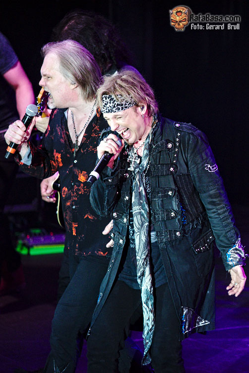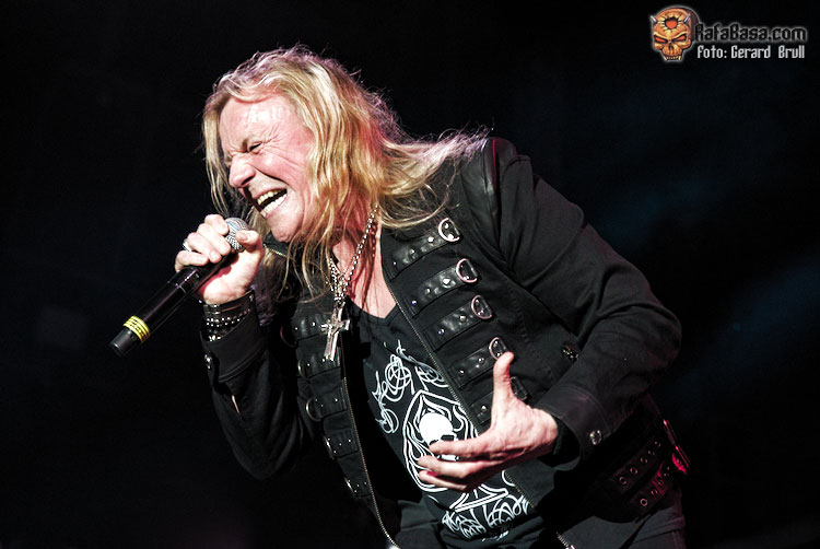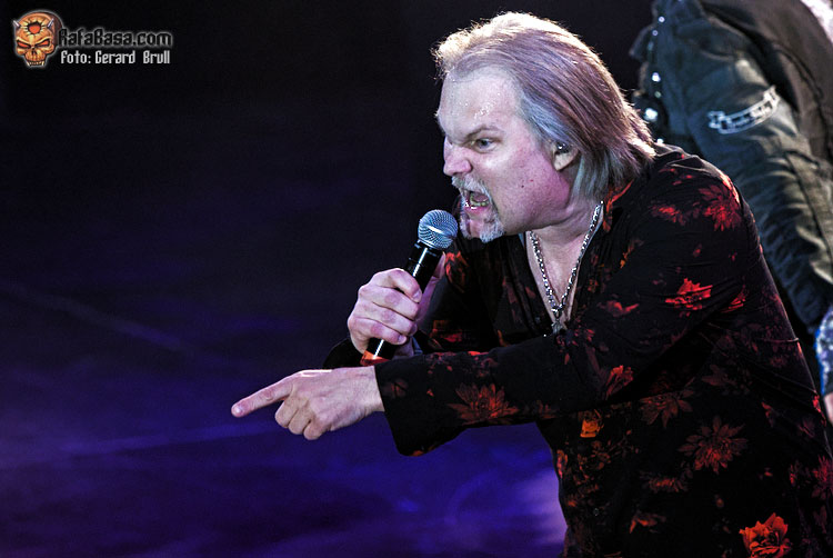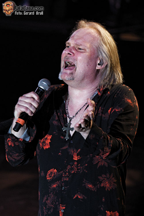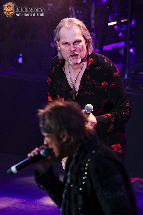 Acto seguido el simpático vocalista reclamó la presencia y la colaboración de los más heavys de la sala para que le acompañaran durante la interpretación del hit discotequero de Michael Sembrello “Maniac” que, sorpresivamente, fue de los cortes más coreados, no se si por el tema en cuestión o porque fue durante el que hizo su aparición estelar Eric Martin. Curiosamente el vocalista americano fue el único junto a Bob Catley que no descendió desde la escalinata, sino que apareció desde un lateral del escenario. Como siempre Martin lució su eterna sonrisa y su juvenil estampa mientras se metía al personal en el bolsillo al interpretar un temazo como “Dying For An Angel”, que era la escogida para reivindicar el material de “The Wicked Symphony”.