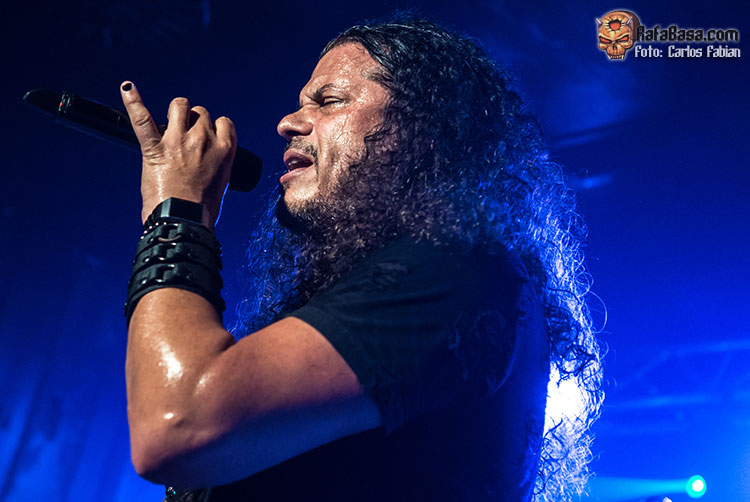 Ya situados a una distancia acorde a las circunstancias, pudimos empezar a disfrutar algo más con “Freakshow” otra enérgica pieza de la cosecha más actual de SOTO y con la que las guitarras de Jorge Salán y BJ, enormes ambos toda la noche, empezaron a crujir con más poderío dentro de ese sonido moderno y trabajado en el que fuerza y melodía comparten protagonismo sobre la rotunda y técnica pegada de Edu Cominato en la batería formando el sustento rítmico junto al recientemente incorporado Tony Dickinson que con su bajo de ocho cuerdas ocupó con sobrada solvencia el enorme hueco dejó el tristemente fallecido David Z que fue recordado con cariño a lo largo del show, al igual que Marcel Jacob bajista de TALISMAN que nos dejó hace unos años.