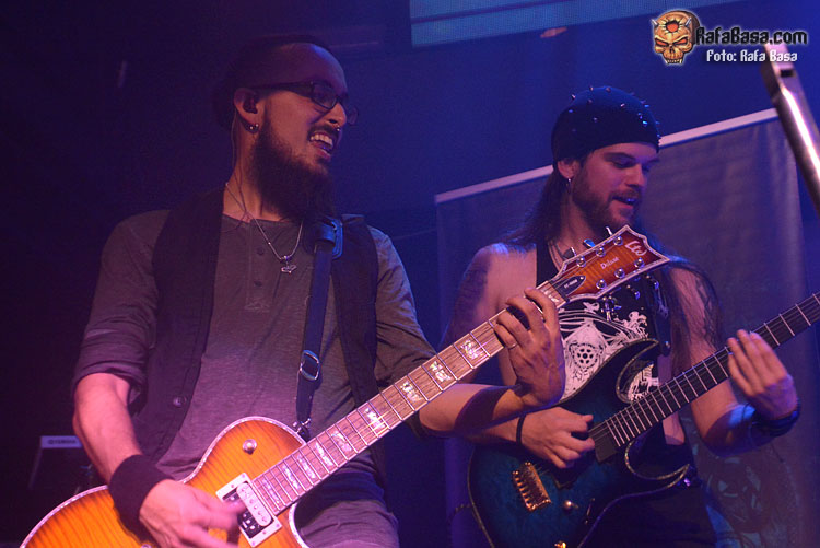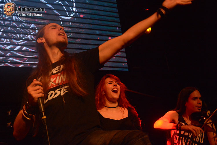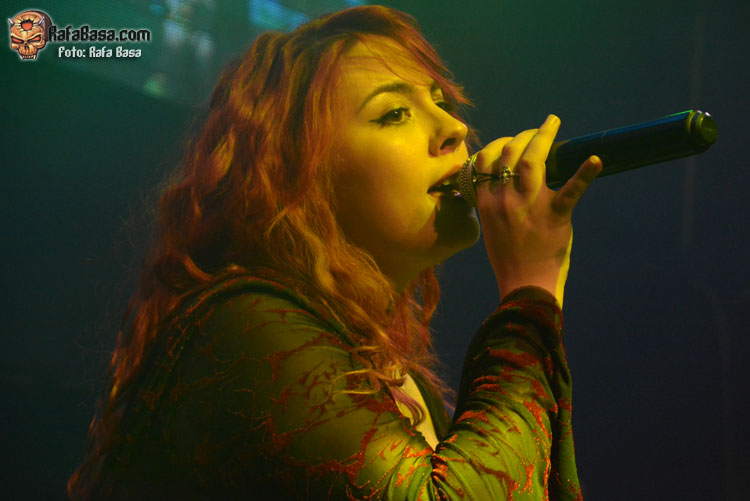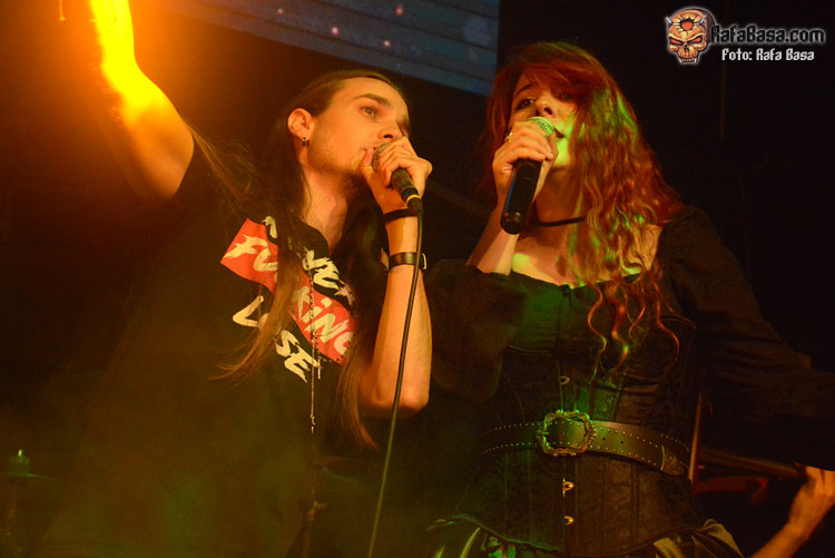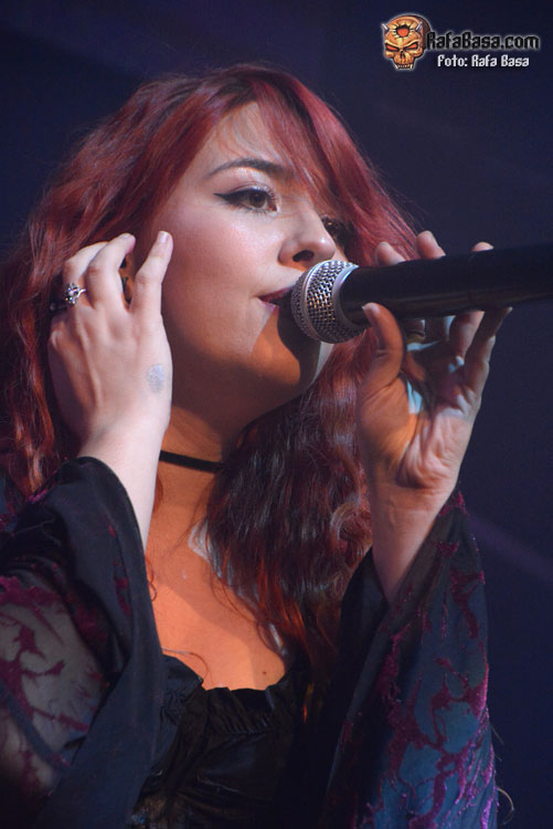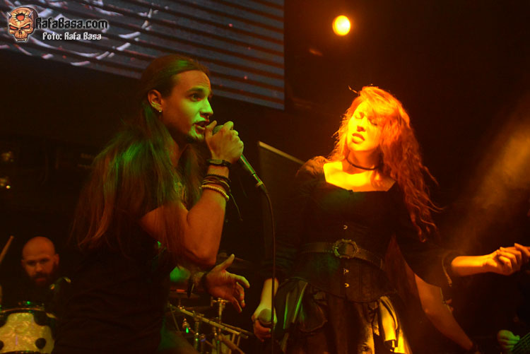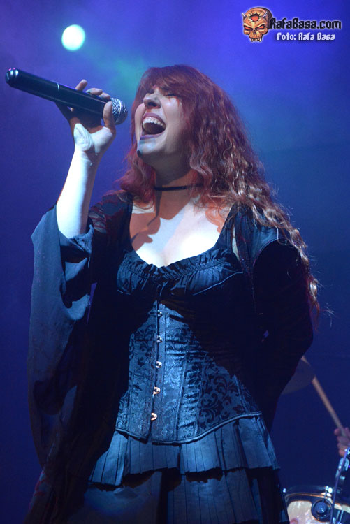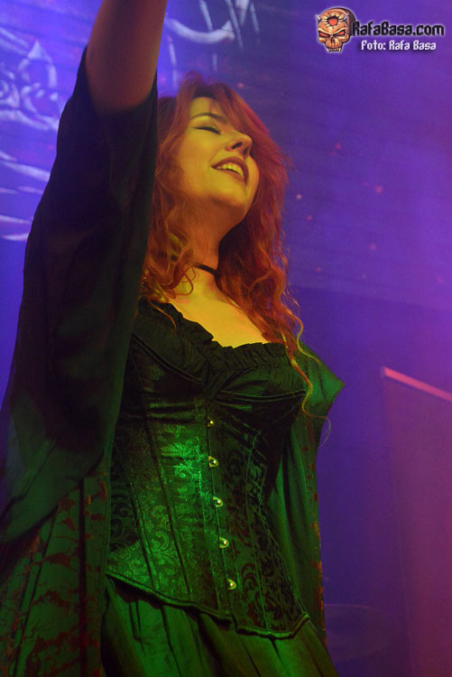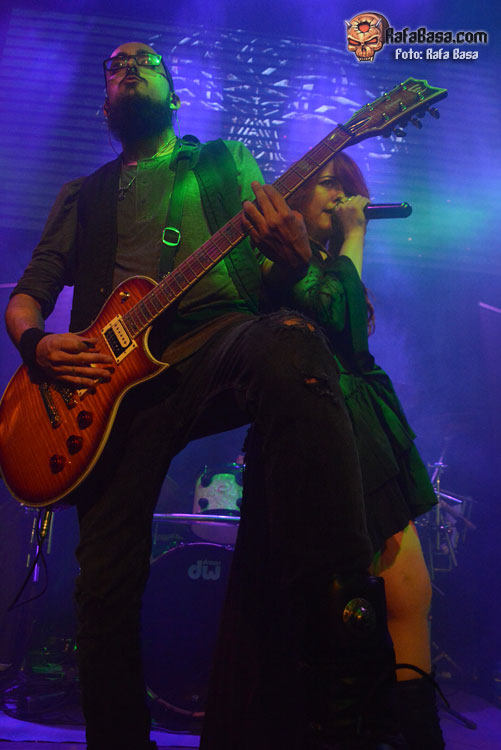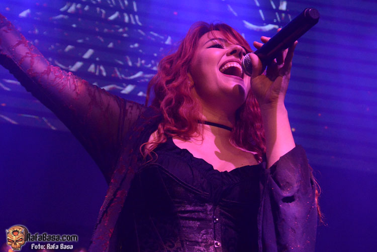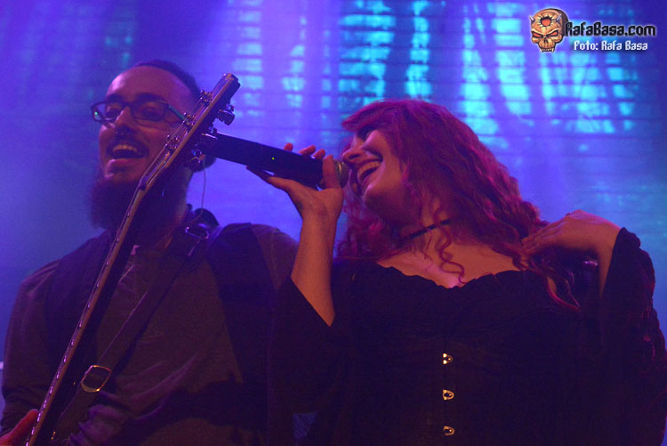 Mientras sonaba la intro, la banda fue apareciendo encima del escenario, ante el júbilo generalizado. El primero fue el buen batería David Landeroin, quien me pareció uno de sus mejores músicos, potente y seguro a los tambores y bombo y la última, como no podía ser de otra manera, fue Xana Lavey, que salió de bambalinas, cantando “La Musa del Bosque” que fue recibida como la panacea musical más esperada. Su tema más power del disco gozó de un buen sonido, y le sirvió al grupo para ir soltando nervios, pero demostraron tanta alegría e ilusión, que la banda fue capeando y mostrando una buena predisposición ante tan especial noche. Xana vestida como una musa salida del medievo, cantó muy bien, sonriente, y se movió con soltura, junto a un Diego poseído por las circunstancias.