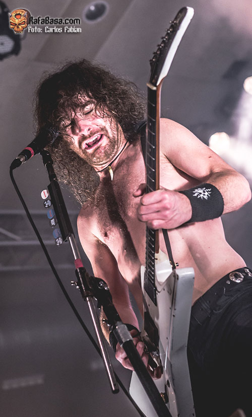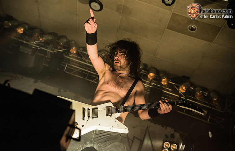 Permanecerían brevemente en los vestuarios, y retornarían raudos a escena para quemar los últimos cartuchos. Como broche, la fulgurante “Ready To Rock” puso literalmente la sala patas arriba con toda la concurrencia coreándola al unísono y ovacionando a la formación. La cerveza seguía teniendo su protagonismo, fueron unos cuantos, los que recibieron vasos de Joel O’Keeffe que los lanzaba acertadamente. Concluyeron con la indiscutible “Running Wild”, sudando Joel O’Keefe la gota gorda para no perder la voz y animando a los congregados a meterse en el circle pit que se había montado.