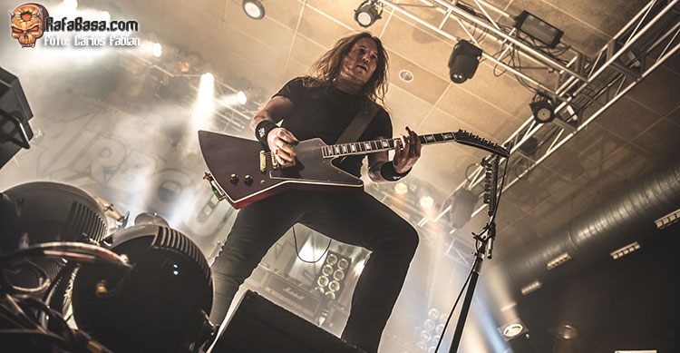 Engalanaron el escenario con el logotipo de la banda y varias columnas de amplificadores Marshall, añadiendo esa inevitable atmósfera solemne al evento. Un montón de focos, repartidos por el escenario, incluyendo uno móvil, y unos cañones de humo completaban la parafernalia. Al igual que en otros bolos previos, lamentamos la imposibilidad de haber visto montado el telón completo y el resto de atrezo que traían en el tráiler que dejaron aparcado en los exteriores. Aguardaron hasta el tercer corte, para dar cabida a su nuevo plástico por medio de la eficiente “Burnout The Nitro”.
