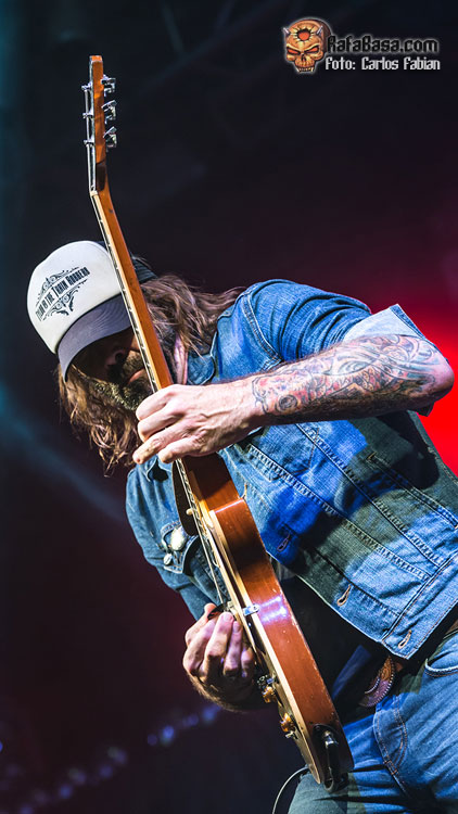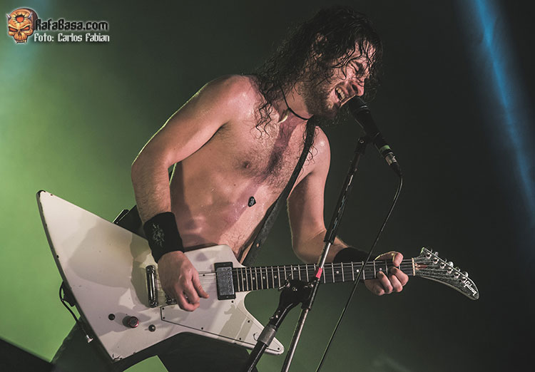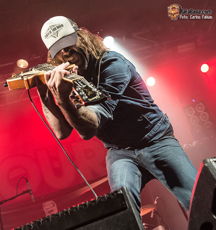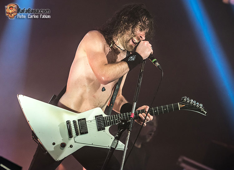 Un tema que no había sido escuchado por mucha gente ya que no formaba parte de los tres primeros adelantes en formato single que han ido lanzando estos meses atrás. La banda continúa fiel a sus ideales, siguiendo la senda que tantos logros les ha reportado en su trayectoria y sin complicarse la vida. Joel O’Keeffe estuvo respaldado estrechamente por sus compañeros Matt ‘Harri’ Harrison y Justin Streets que también desarrollaron un bolo demoledor. Continuarían repartiendo leña de lo lindo con “Back In The Game”, otro tema que han decidido rescatar para esta gira y que cuajó rotundamente entre los asistentes.