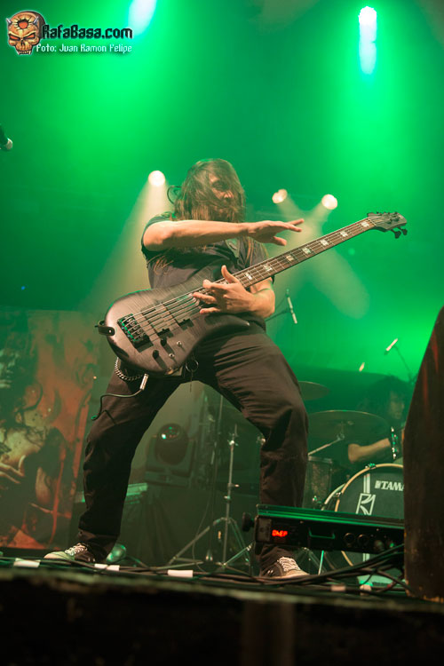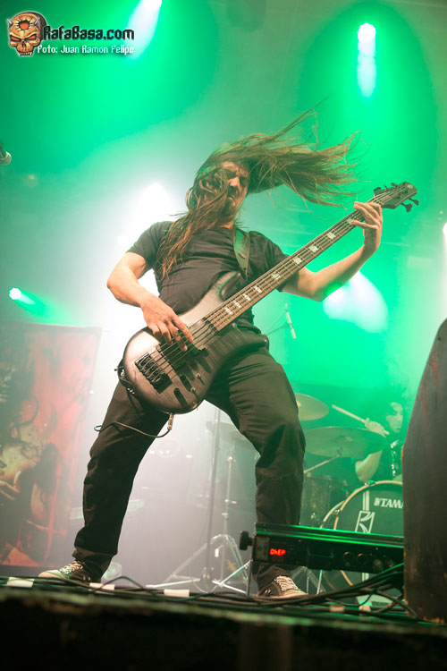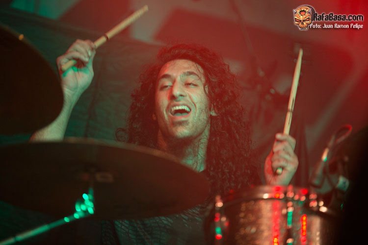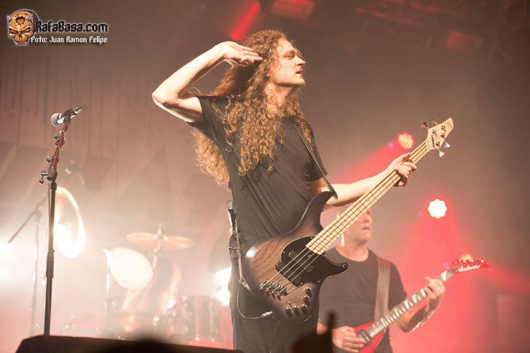 Acto seguido el trío de cuerda abandonó el escenario para dejar solo ante el peligro al batería Fabio Alessandrini, quien durante unos cinco minutos aproximadamente se dedicó a mostrarnos algunas de sus habilidades técnicas. No tardaron en regresar sus compañeros para volver a incidir en el tercer largo de la banda para dar buena cuenta del corrosivo “Knight Jumps Queen”, que estuvo marcado por su amenazante riff de bajo y esos demoledores coros marca de la casa. Sin concedernos ni un segundo de tregua tocaba cambiar radicalmente de registro, de modo que la banda tuvo que apretar los dientes para acelerar el paso haciendo estallar esa bomba thrasera que lleva por título “Twisted Lobotomy”.