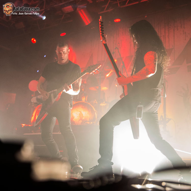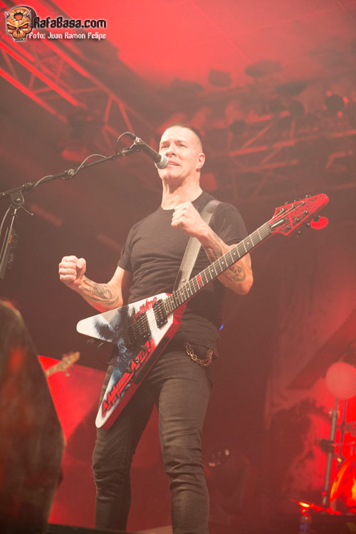Aunque en su momento el tercer disco de los canadienses “Set The World On Fire”, el álbum que grabaron junto al vocalista Aaron Randall, fue muy criticado por su orientación más melódica con respecto a sus dos primeras entregas, lo cierto es que actualmente es uno de los más apreciados por sus seguidores, y la mejor prueba fue comprobar como el público decidió hacer suyo el estribillo de su tema título ante la sonrisa de satisfacción de Waters. Los riffs no tardaron en acelerarse para dar ese toque netamente thrashero a la arrolladora “Ultraparanoia”, que propiciaba que la acción no se detuviera en los aledaños del escenario mientras Rich Hinks y Aaron Homma corrían incansablemente para intercambiar una y otra vez sus respectivas posiciones.