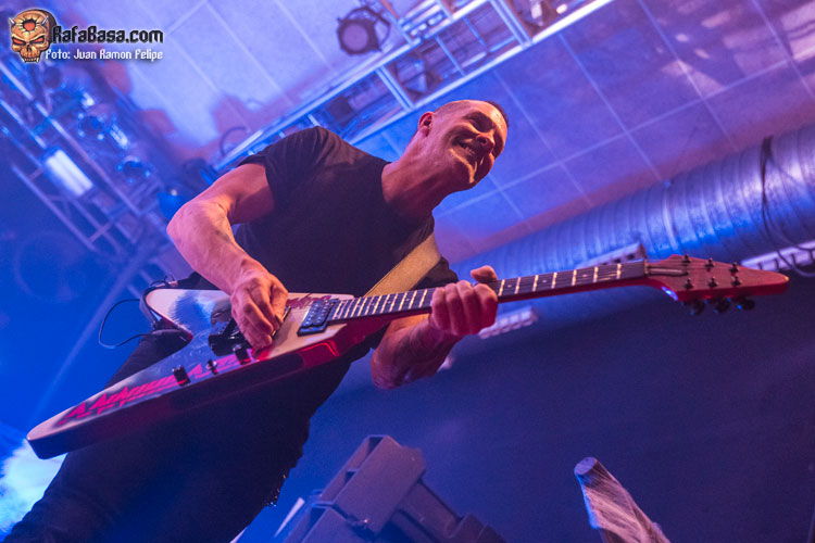 Pese a que durante su longeva andadura Waters se ha consagrado como un hacha rápido, técnico y preciso, esto no quiere decir que el guitarrista haya bajado su nivel de exigencia a la hora de escribir sus canciones. Así que como el mismo nos reconoció interpretar en directo temas como el que abría su álbum homónimo “The Trend”, sigue suponiendo un auténtico desafío para él. Evidentemente, como no podía ser de otra forma si hablamos de aunar virtuosismo y velocidad thrashera, no podía faltar ese desquiciante ejercicio que es el primerizo e incontestable “Schizos (Are Never Alone) Parts I & II”, que volvía a desatar la euforia del personal para poner el recinto literalmente patas arriba.