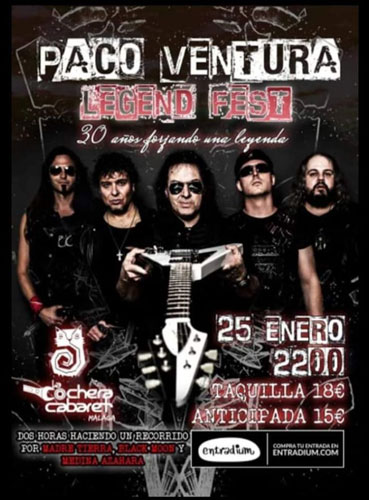 Paco Ventura Legends Fest da nombre a una serie de conciertos donde se hace un merecido repaso a una consolidada carrera de algo más de treinta años del por todos conocido Paco Ventura.