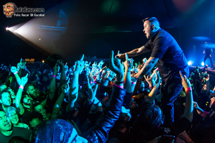 “I Fought The Law” es otro ‘cover’ que nunca puede dejar de estar en sus repertorios, y “God Willing” es un tema que muchos esperábamos con ansia y no las teníamos todas consigo. Desató toda la furia de la gaita de Scruffy y Ken interpretó como un auténtico salvaje. Una pasada. Cómo no, “Citizen C.I.A.” fue ese momento de máximo ajetreo en el ‘mosh’, que no paró de funcionar por cierto en la hora y media que estuvieron encima del escenario, que fue seguida de un tema nuevo, que no sabemos si vendrá en el segundo de los singles que la banda tiene planeado lanzar este año. Me gustó también que presentaran, por primera vez en directo, los dos temas que componen el single digital con edición en vinilo de 12’’, “Smash Shit Up”, que sale ya mismo, el primero, y funcionó especialmente bien el primero, un tema sencillo, combativo y que gustó mucho. La versión posterior de Gerry Cinnamon me gustó algo menos, aunque ya se sabe cómo les gusta a los MURPHYS estas cosas…
