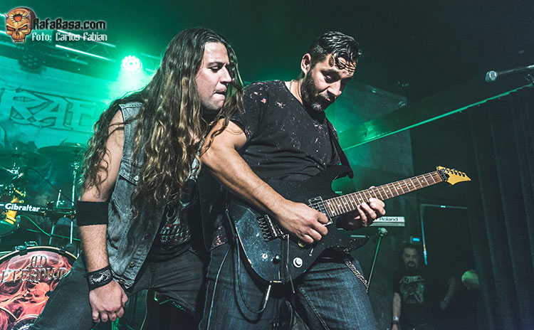En forma y con “Dogma”, su trabajo de debut, llegaban a Gasteiz AD ETERNUM. Todo ello se percibió en la fluidez con la que descargarían cada uno de sus grandes temas de heavy metal tradicional y melódico. Temas con unas trabajadas melodías en las que el veterano Patxa, al que alguno recordaría en la zona de su fugaz paso por los locales UTM, se gustaría y gustaría a los presentes.