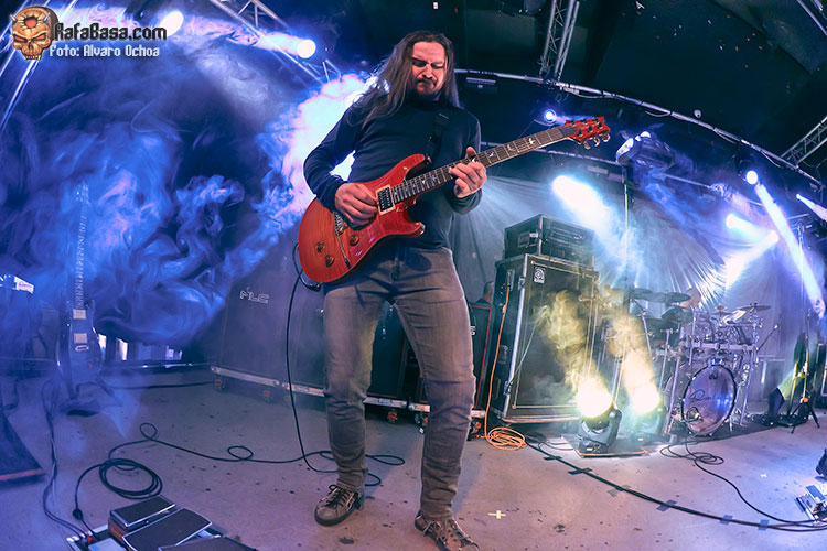 Sin banda telonera que caldeara previamente el ambiente, el cuarteto se lanzó al escenario con “Acid Rain”, tema que abría su último trabajo en 2018. Es un corte cañero, con riffs potentes sobre ritmos complejos, pero con un estribillo realmente cristalino. La segunda parte de la canción implicó notablemente al público, que cantó todas las melodías con gancho desde el primer momento. Es uno de mis momentos preferidos de “Wasteland”, y me gustó aún más en directo. Durante la primera fase del concierto RIVERSIDE fue desgranando algunos de los mejores temas de ese álbum, como “Vale of Tears” o la estupenda “Lament”. Los arpegios de guitarra en esta última, más melódica y a medio tiempo, sonaron realmente bien; acompañados por los arreglos del bajo.