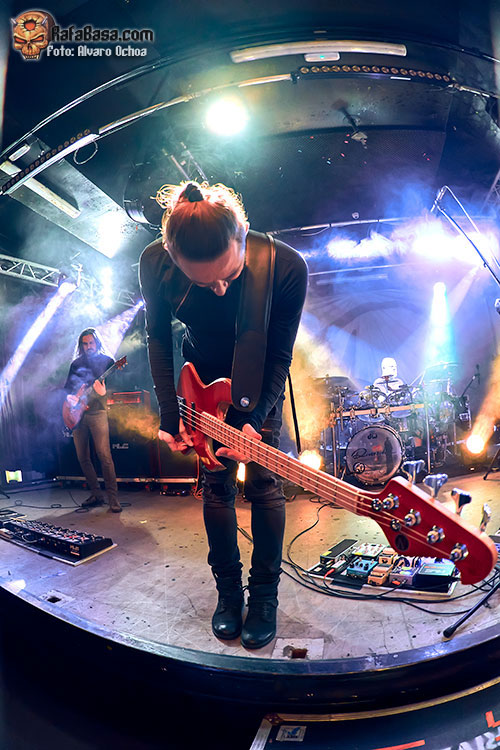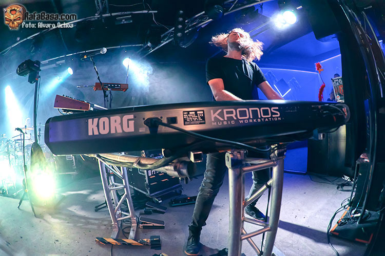 Aprovecho este momento para comentar algunos aspectos generales de la actuación que es obligatorio señalar. Desde el comienzo el sonido fue brillante. Es la tónica general en las bandas de este tinte musical, pero siempre hay malas noches. En la Sala Mon, por momentos, parecía que se estaba reproduciendo a gran volumen cualquier disco del grupo por los altavoces. Todos los instrumentos sonaron a su volumen adecuado, muy bien ecualizados. Era fácil distinguirlos con claridad y escuchar todos los arreglos, y eso siempre es un gusto. A nivel musical, RIVERSIDE destacan muchísimo más en vivo que en el estudio. Solo ahí se puede apreciar realmente el trabajo de sus cuatro integrantes, especialmente cuando hablamos de Mariusz Duda y Michal Lapaj. El vocalista/bajista me dejó realmente impresionado. Primero a nivel técnico, ya que pasa sus bajos (en plural, ya que sacó al menos cuatro a pasear en el escenario) por muchísimos pedales que le ofrecen una variedad de sonidos notable. Sostiene a la banda con ello, con una potencia y un gusto, según el tema que estuvieran interpretando, tremendos. A nivel vocal, Duda cantó realmente fantástico. Su voz es muy cálida y transmite muchísimo. Lapaj, por su parte, se encarga de la mayoría de los arreglos de las canciones con sus teclados y sintetizadores. Fue el más carismático y cercano de los cuatro músicos, bromeando con los asistentes en más de una ocasión. En general, en este apartado el grupo estuvo muy acertado. Vi un poco más cohibido a Maciej Meller, ya oficialmente cuarto miembro de RIVERSIDE. A pesar de ello, nada que objetar a su trabajo a las seis cuerdas. Estuvo muy bien.