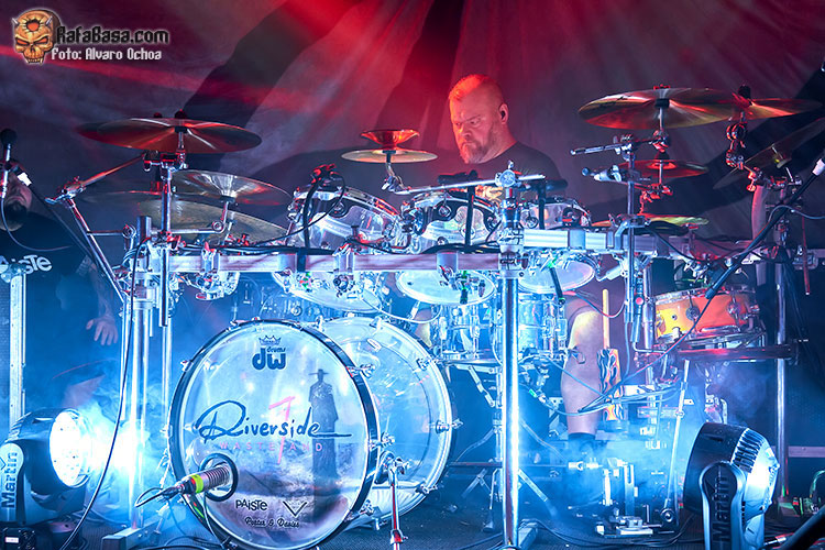 Continuando con el repertorio, la banda había prometido en entrevistas previas (como la que hicimos en este medio) que traerían un set-list diferente para repasar varios clásicos. Fue así. Pronto escucharíamos, por ejemplo, "Hyperactive", donde la tralla se apoderó del escenario; animándose Duda incluso con alguna gutural. Es uno de los temas del grupo que más me recuerdan a DREAM THEATER en sus arreglos. Puro virtuosismo en acción, con mucha presencia de fragmentos instrumentales. La introducción de piano que anticipaba "Conceiving you" fue recibida con una enorme ovación. No es habitual poder escucharla en directo, y es una de las canciones más bonitas e icónicas de RIVERSIDE. Sin duda, uno de los puntos álgidos del concierto. Los arreglos de guitarra de esta canción siempre me han parecido preciosos.